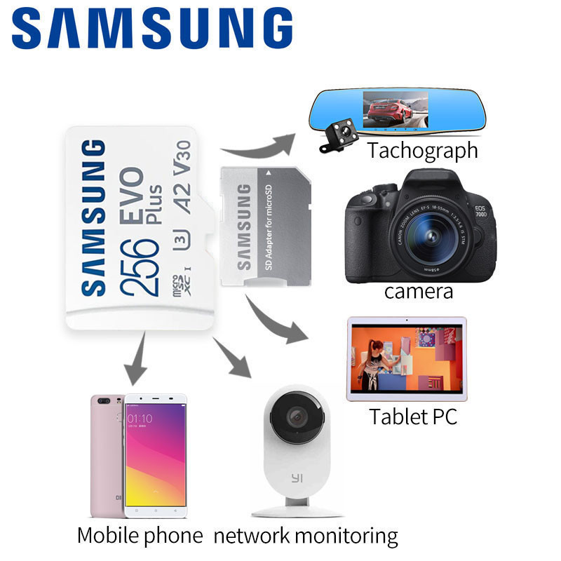 Samsung การ์ดหน่วยความจํา Micro SD tf card 1TB 512GB 256GB 128GB 64GB 32GB 100MB/S Class10 Usb แฟลชไดรฟ์ ฟรีอะแดปเตอร์