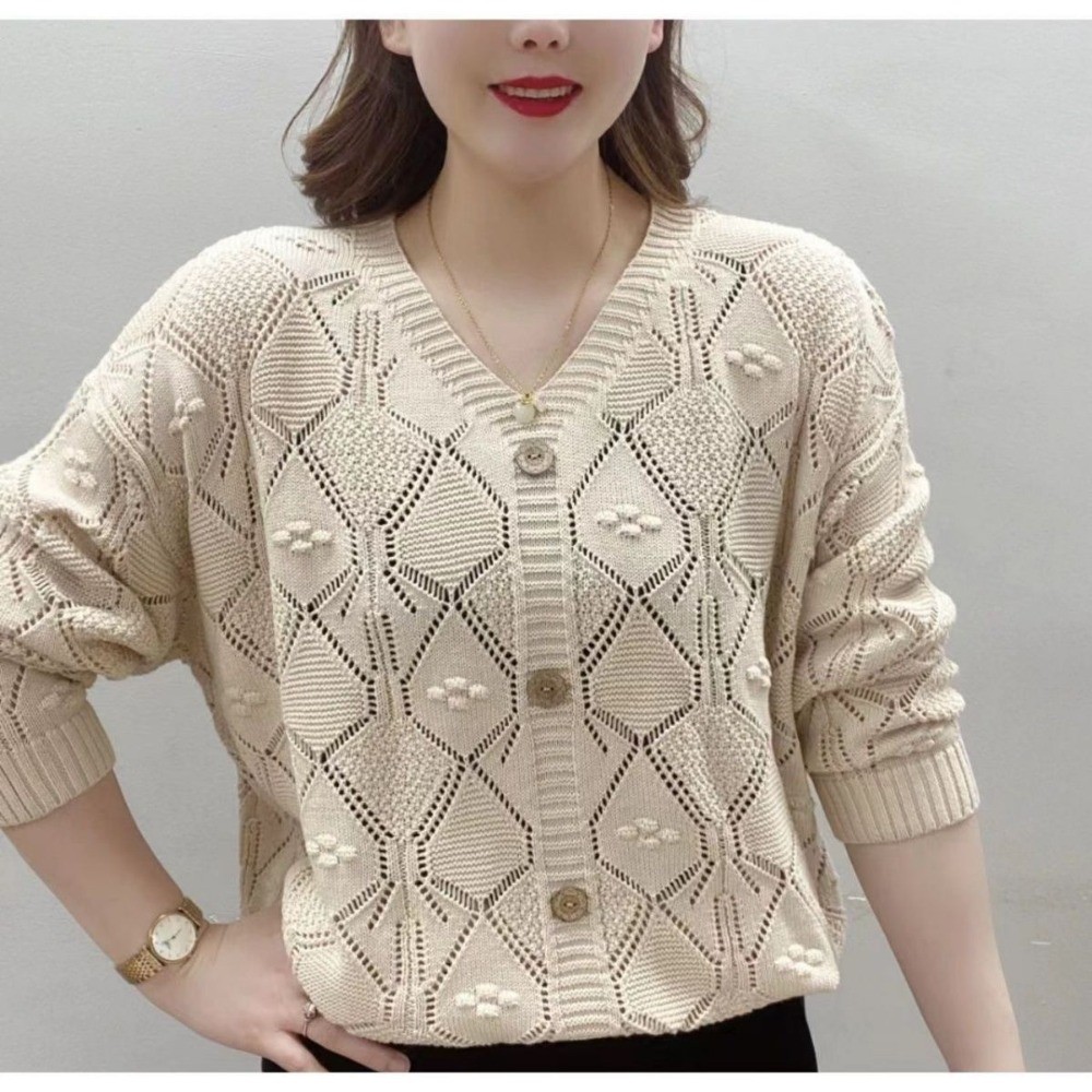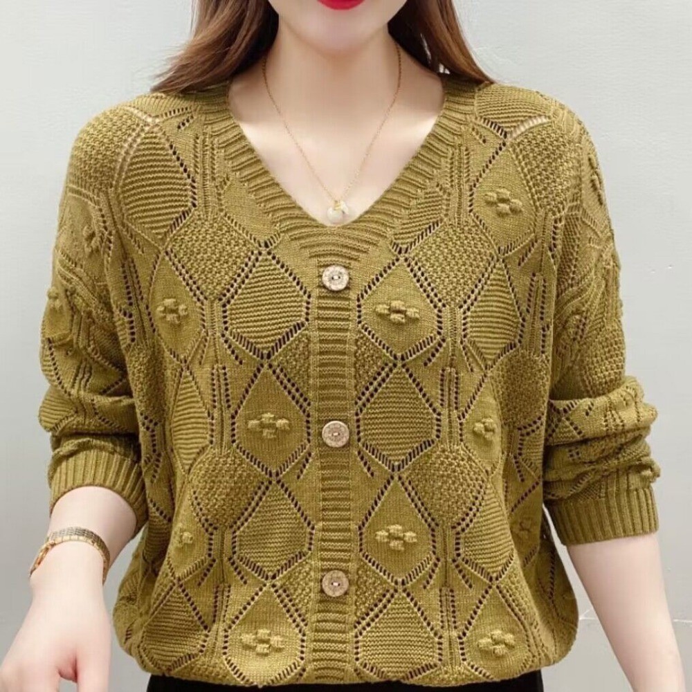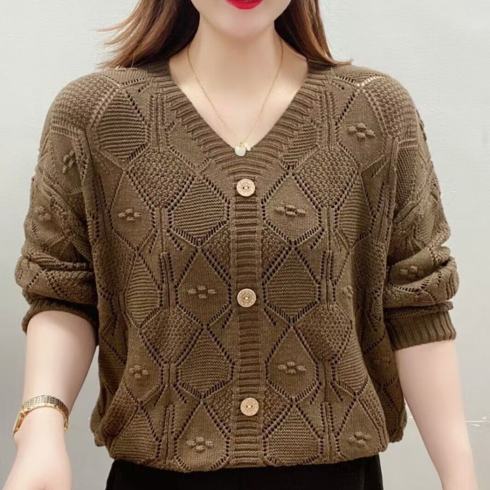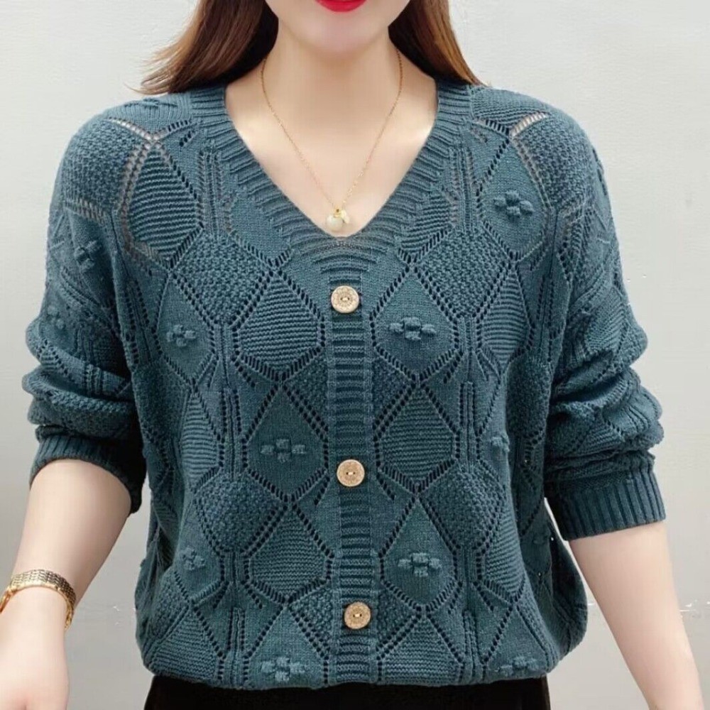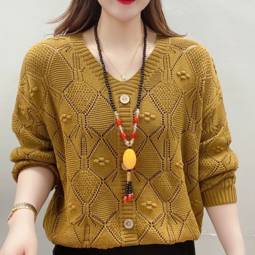 คอวีกลวงถักผู้หญิงแขนยาวด้านบน
