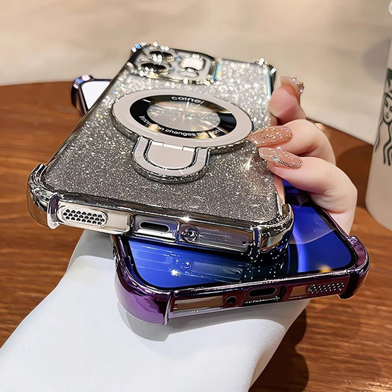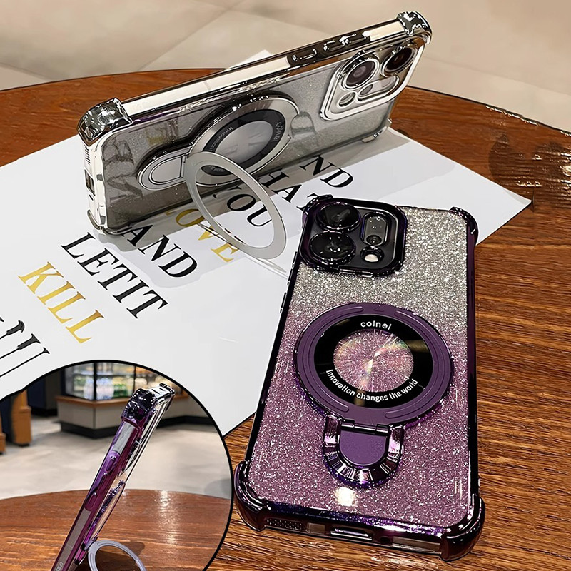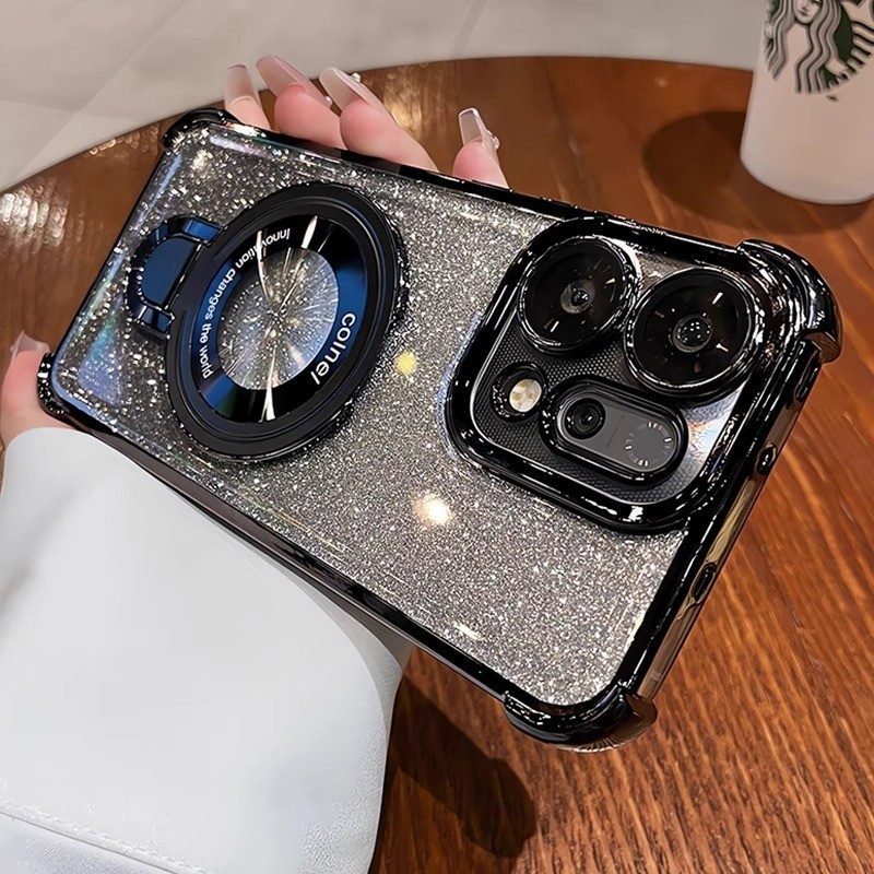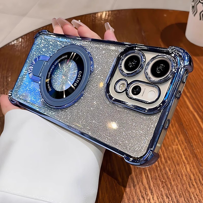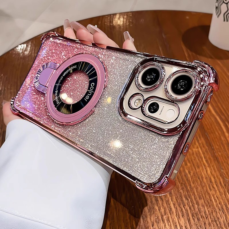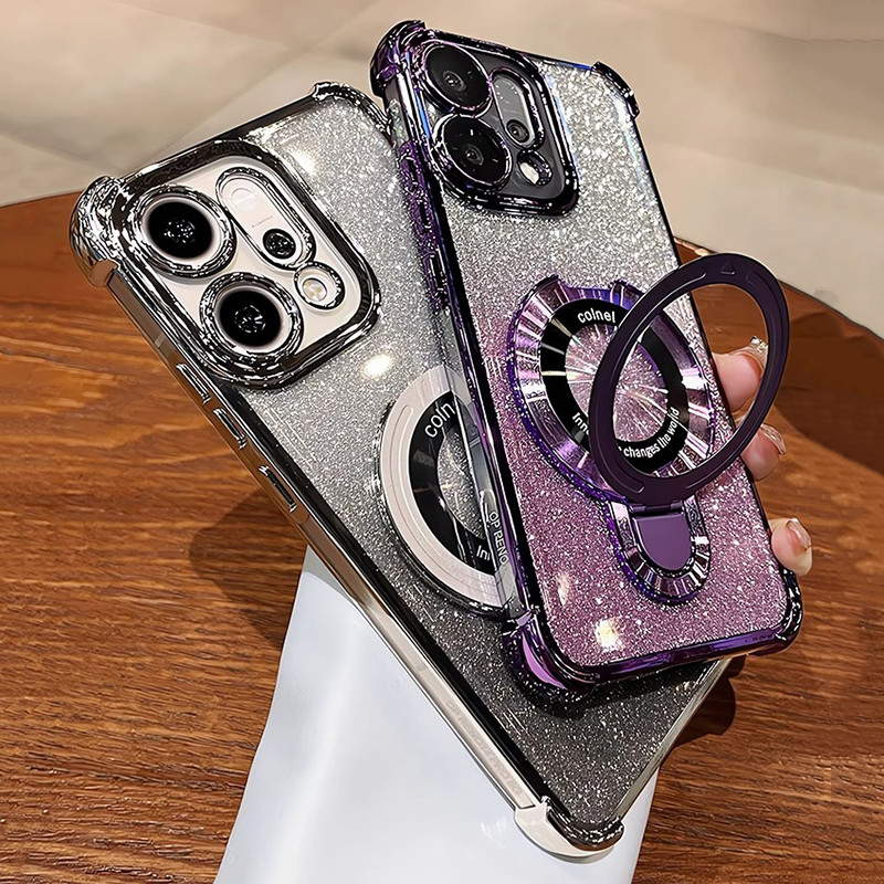 OPPO Reno 14F 13F 12F 11F 5G Reno 14 13 12 11 10 Pro Gradient Glitter แหวนวงเล็บชุบเคสโทรศัพท์แม่เหล็กกล้องป้องกัน Kickstand กันกระแทกซิลิโคนนุ่มฝาครอบ