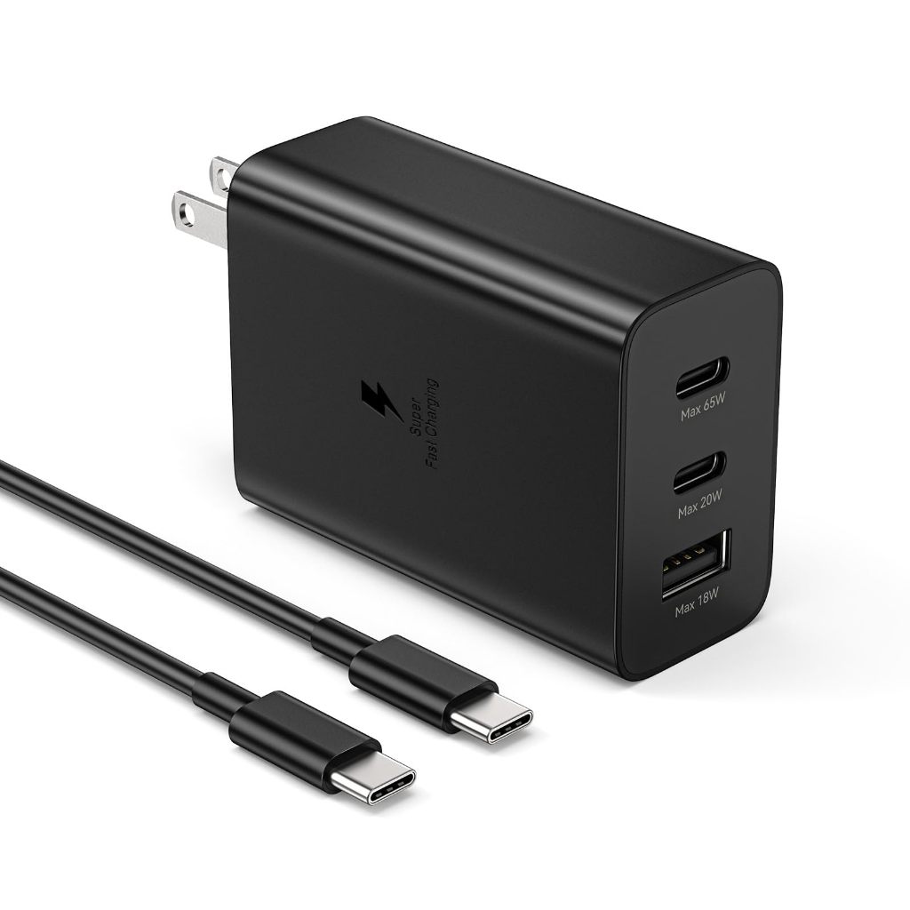 Ganve ที่ชาร์จติดผนัง 3 พอร์ต 65W ซัมซุงแบบชาร์จเร็วพิเศษ, อะแดปเตอร์ GaN สำหรับซัมซุง GaIaxy S25 Ultra S24 S23 S22