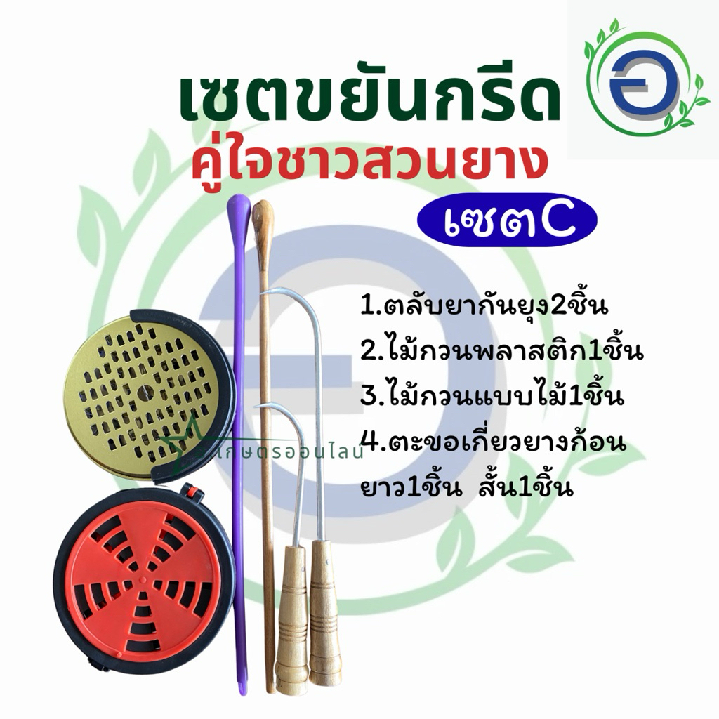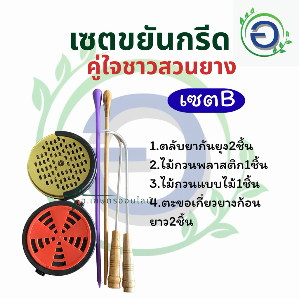 จัดเซตชุดขยันกรีดอุปกรณ์ยางพารา ตลับยากันยุง ตอขอเกี่ยวยาง ไม้กวนน้ำ
