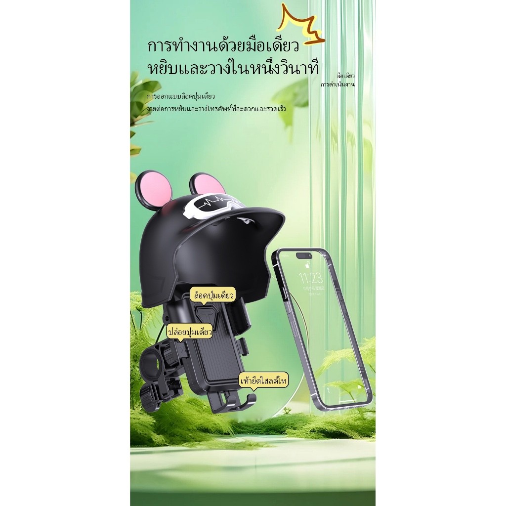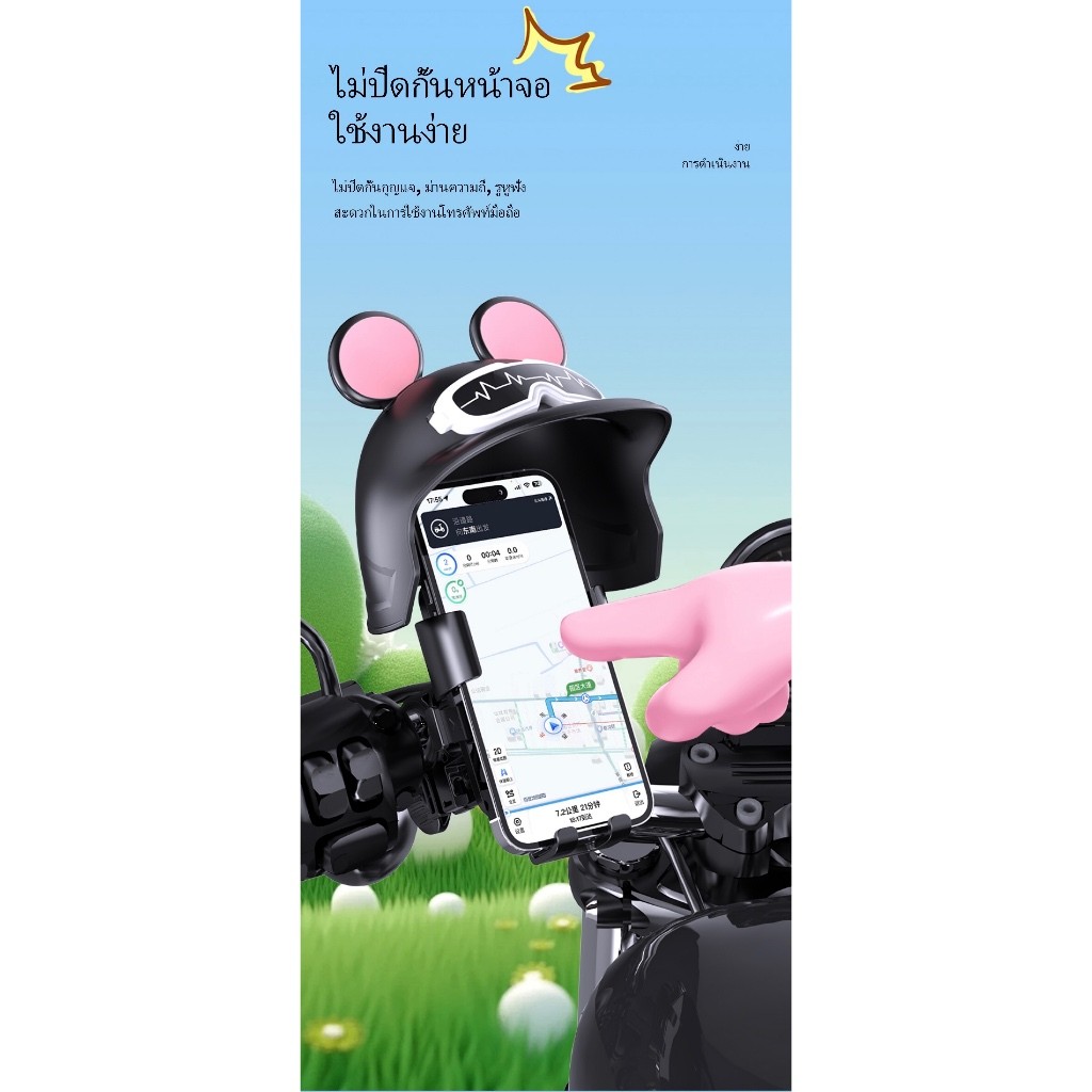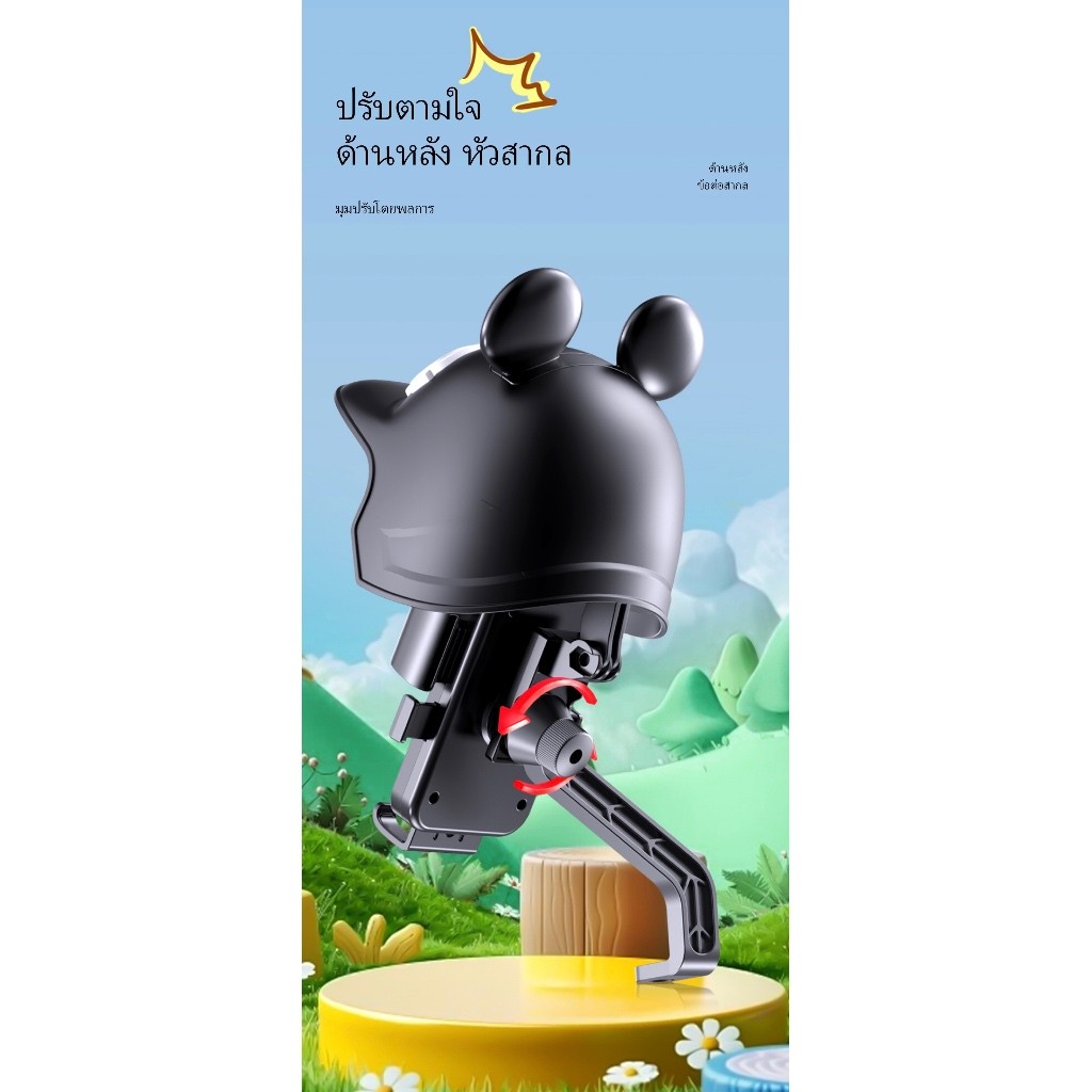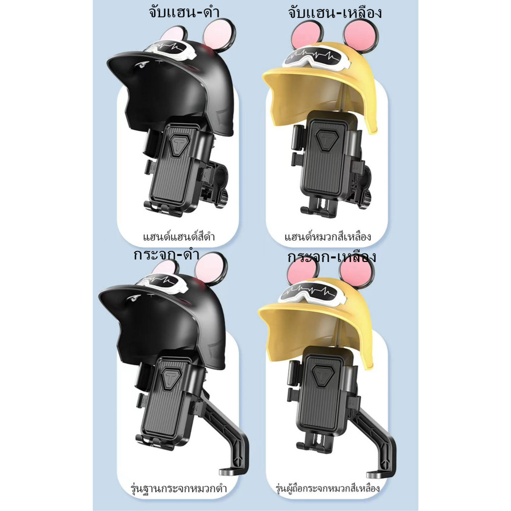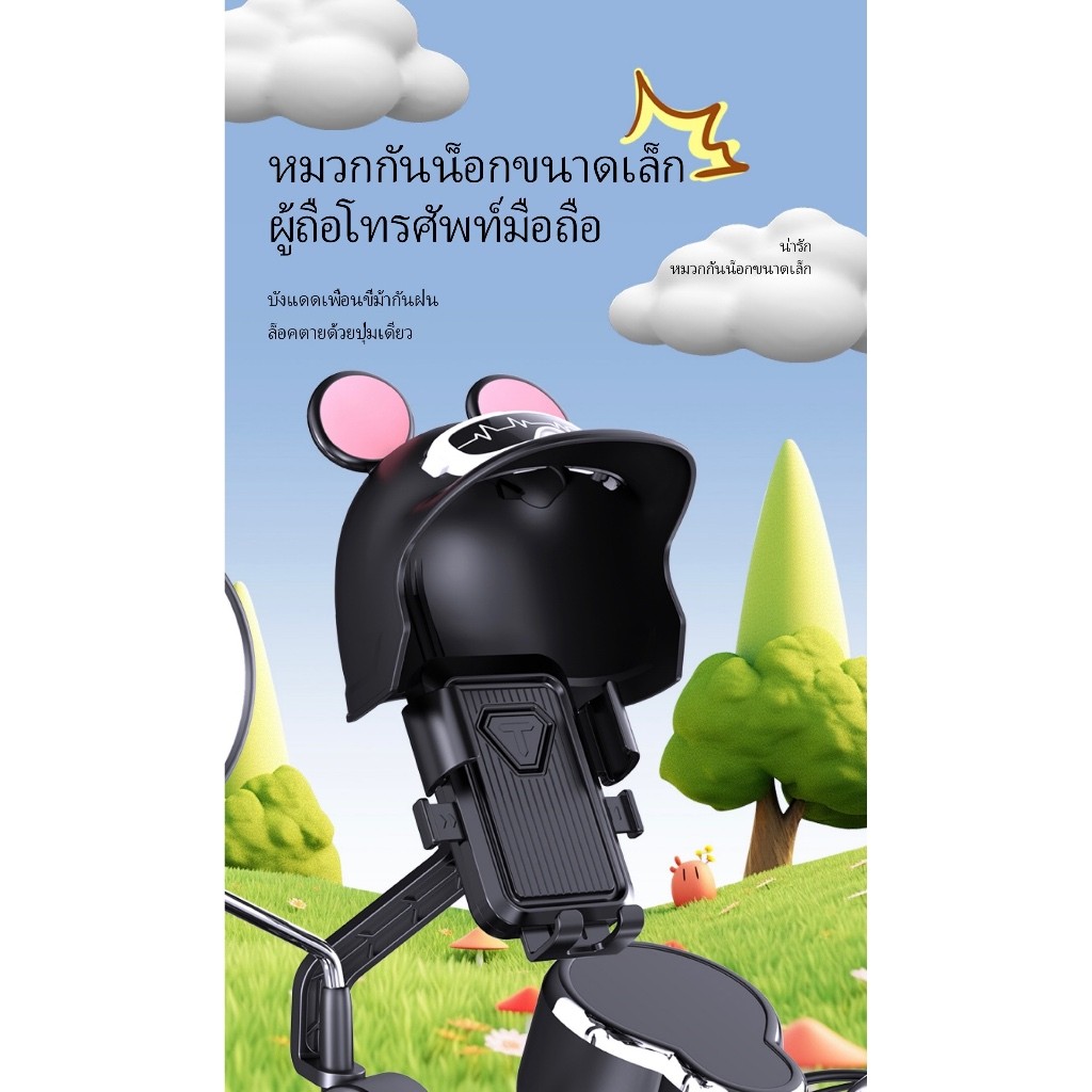 new ที่จับมือถือติดมอเตอร์ไซค์ ติดก้านกระจก(มีหมวก) ที่จับโทรศัพท์มิกกี้ ป้องกันแสงแดด ที่วางโทรศัพท์มอเตอร์ไซด์ Grab