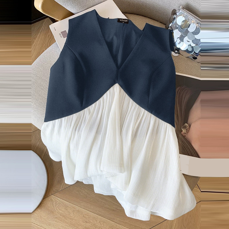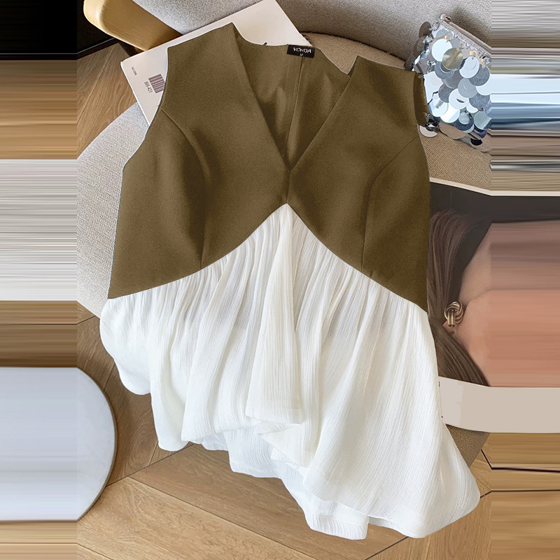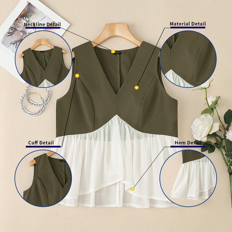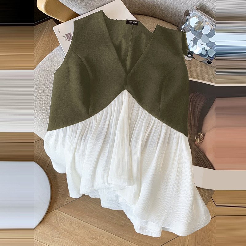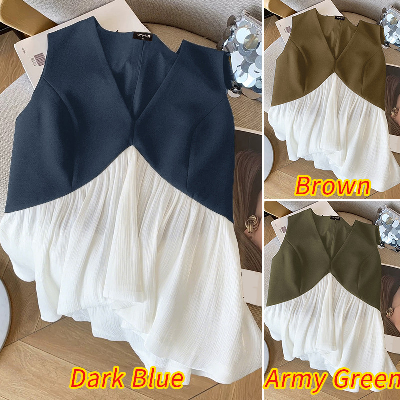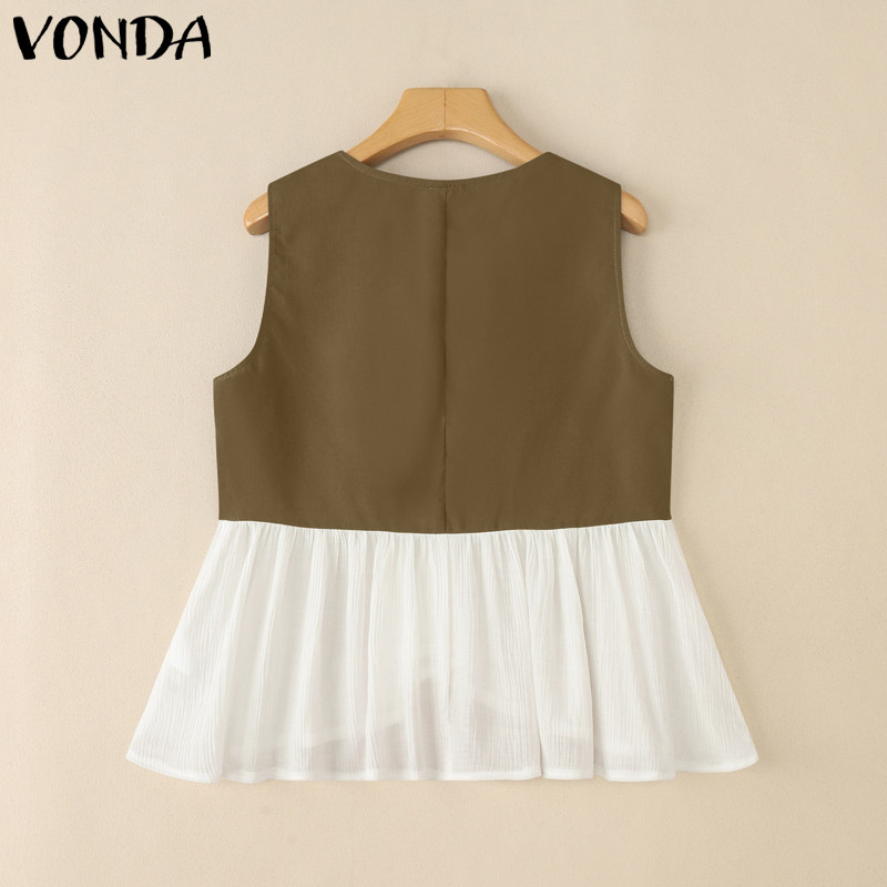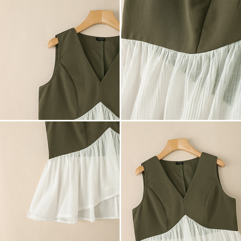 Vonda เสื้อยืดแขนกุดสำหรับผู้หญิง สไตล์เกาหลี ลายพราง แบบ V-neck เหมาะสำหรับฤดูร้อน