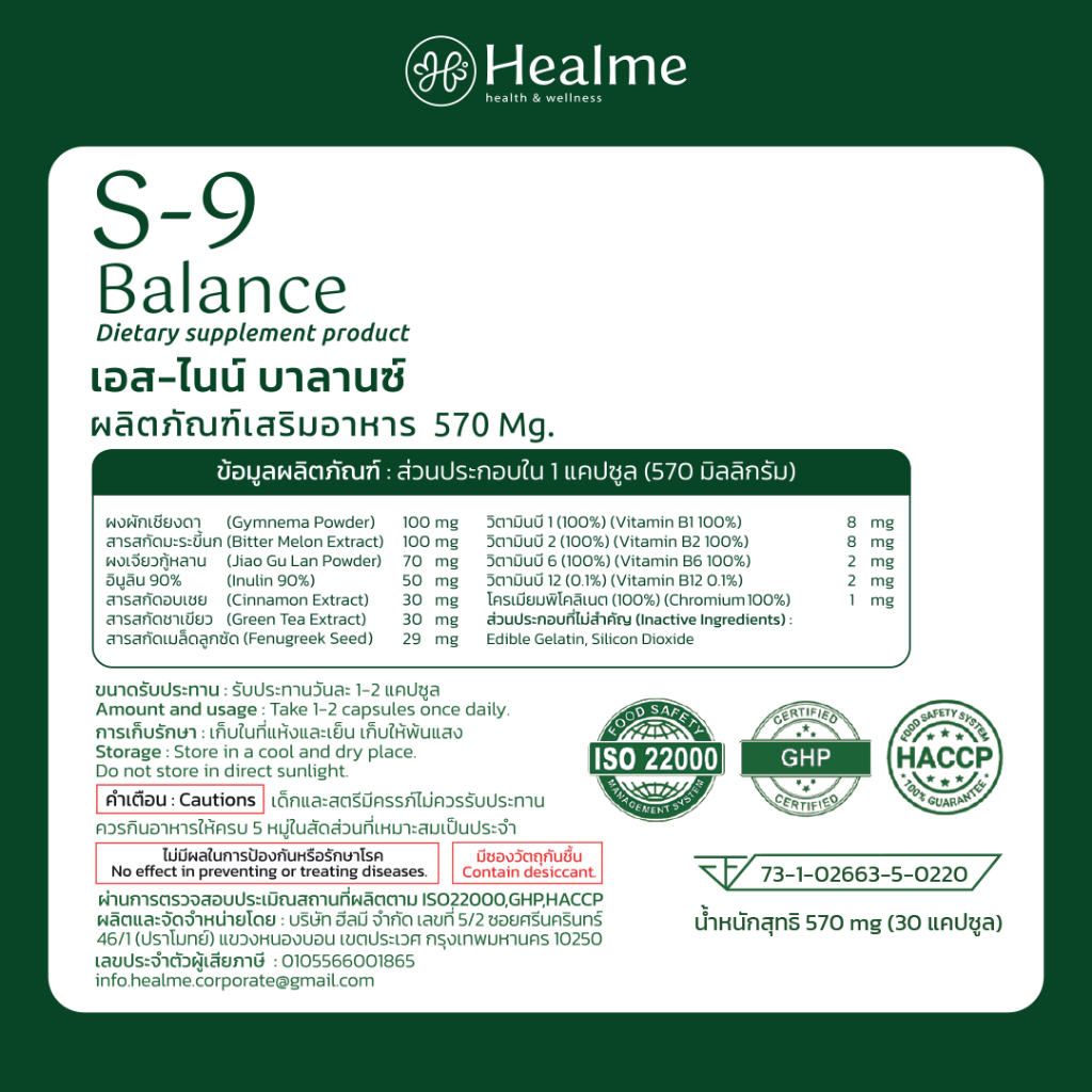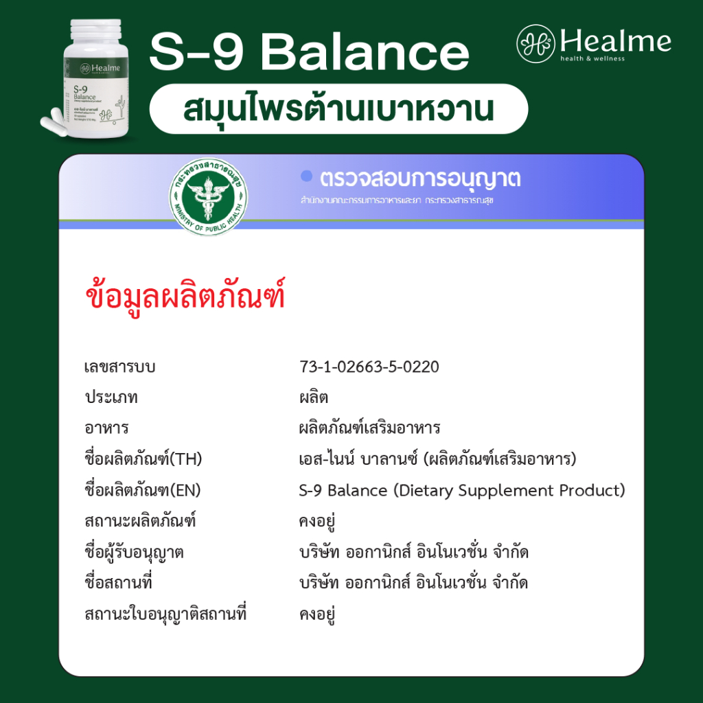 ผลิตภัณท์ S-9 Balance สมุนไพรปรับสมดุลน้ำตาลในเลือด