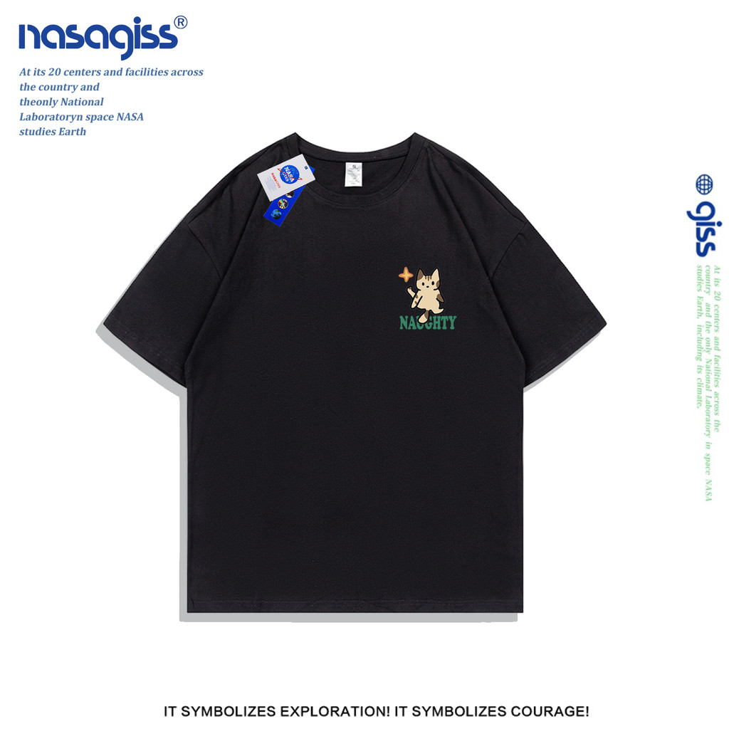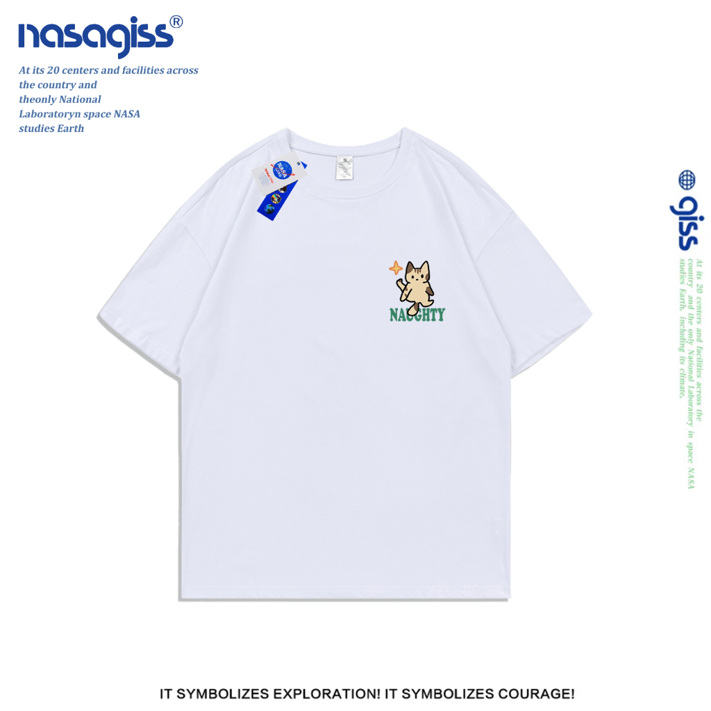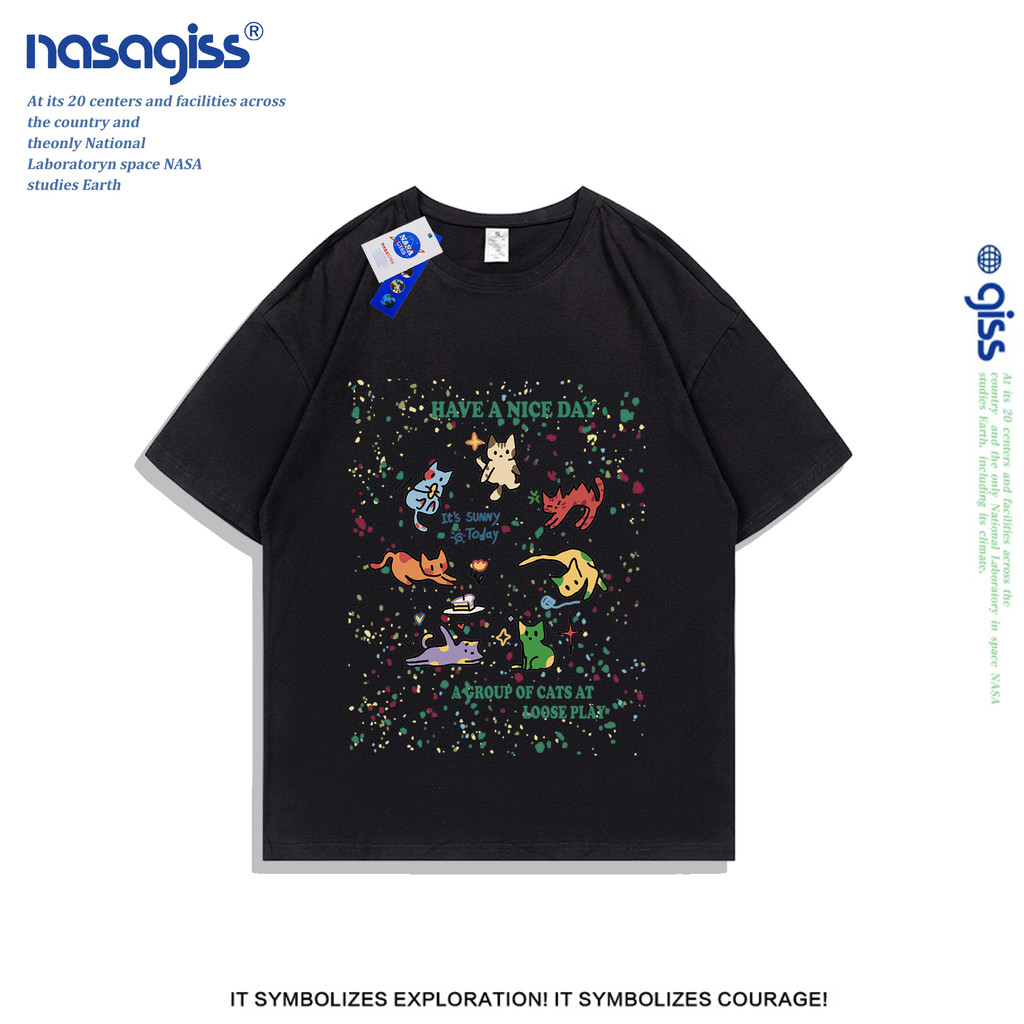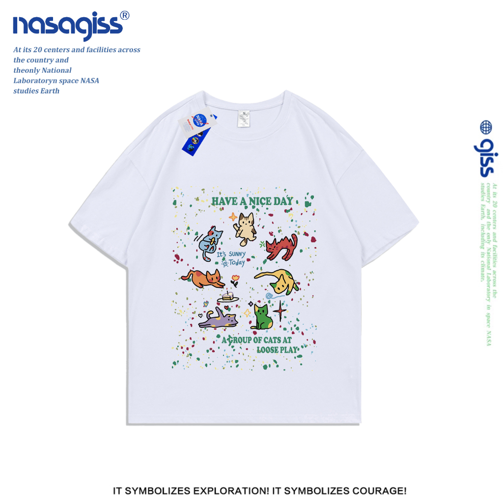 NASA เสื้อยืดคู่แขนสั้น สไตล์ลำลอง summer แมว พิมพ์ลาย คอกลม ทรงพอดีตัวระบายอากาศ เสื้อยืด รุ่นคู่รัก