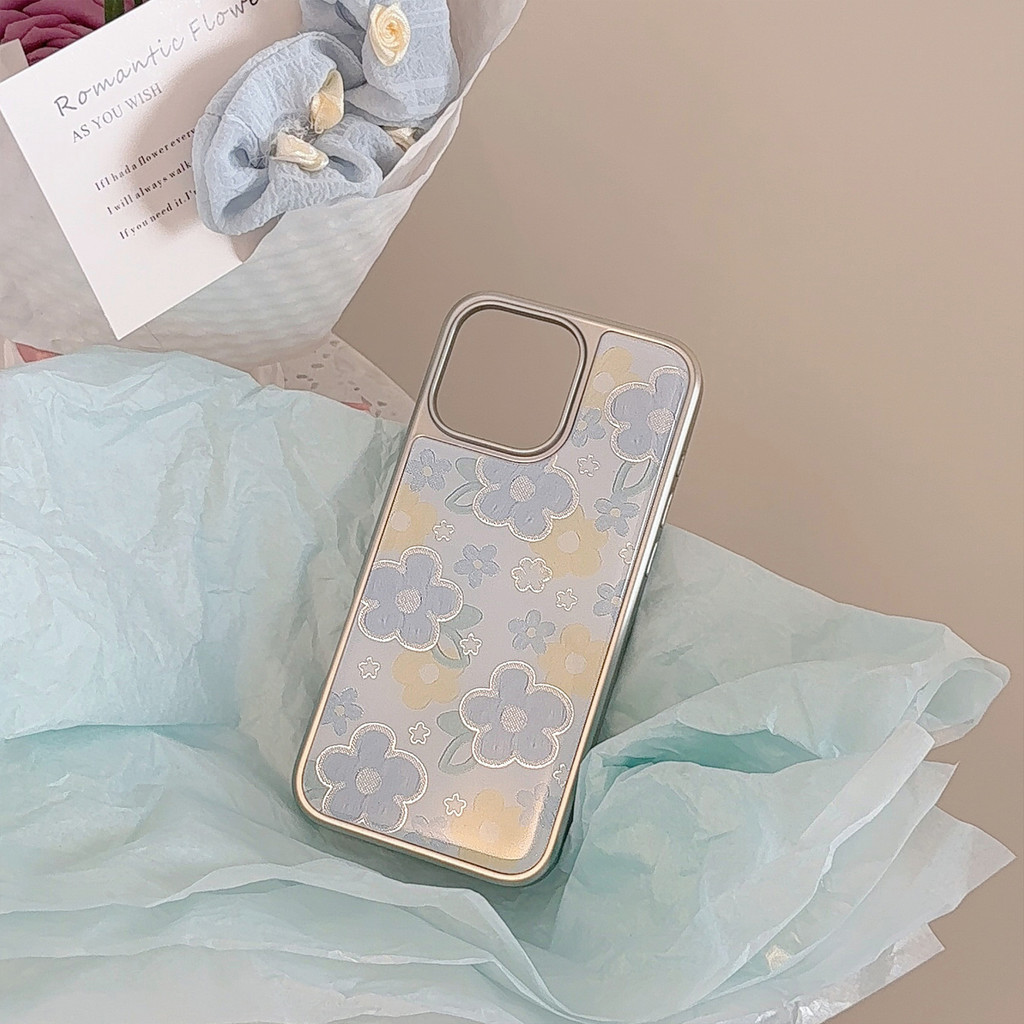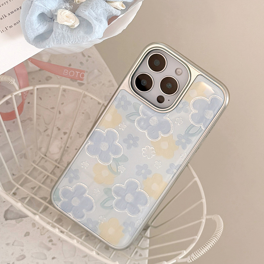 ดอกไม้สีฟ้าและสีเหลืองสีน้ําภาพวาดสีน้ํามันดอกไม้รูปแบบเรซิ่นสําหรับ ไอโฟน 11 12 13 14 15 16 มือโปร สูงสุด บวก เอ็กซ์อาร์