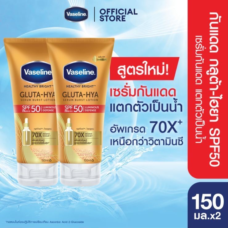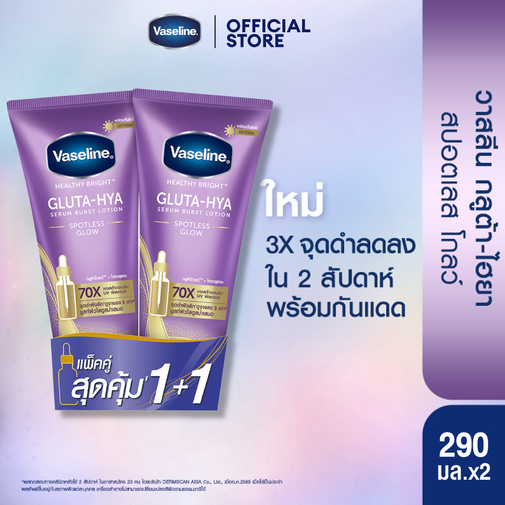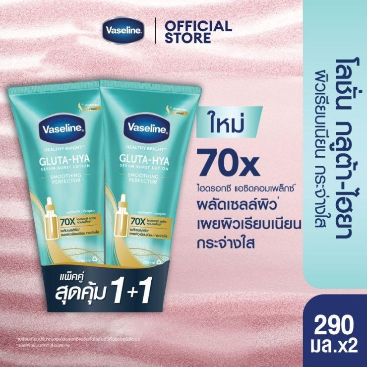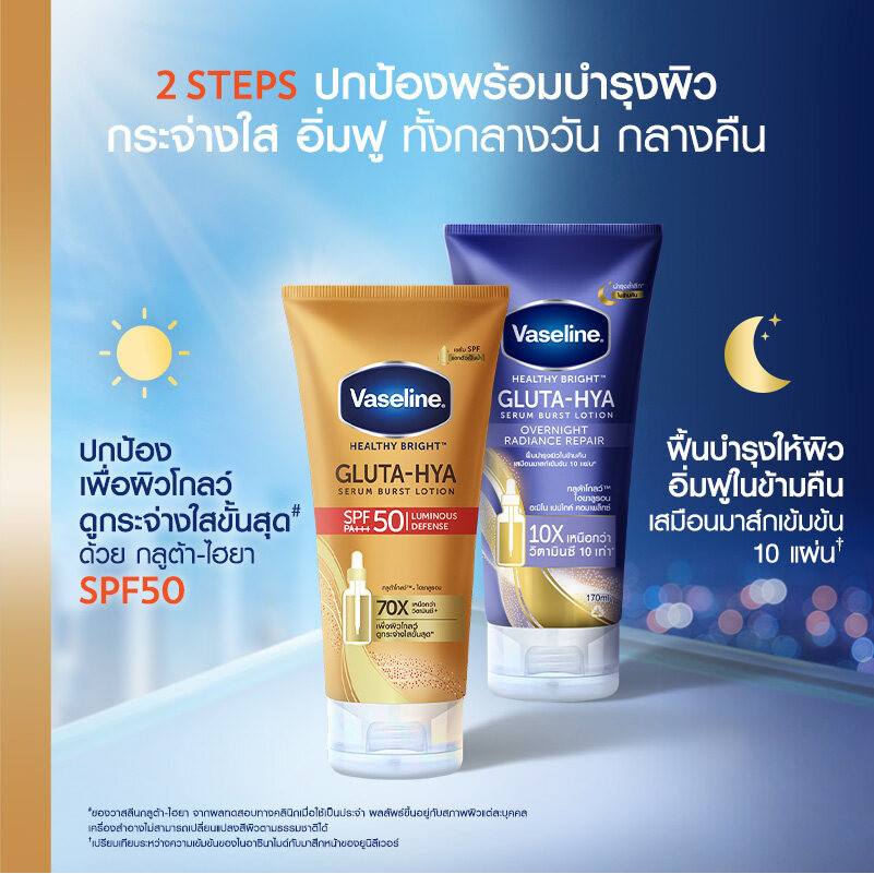 วาสลีน เฮลธี ไบรท์ กลูต้า-ไฮยา เซรั่ม เบิสท์ โลชั่น โอเวอร์ไนท์ เรเดียนซ์ รีแพร์ บำรุงผิวในข้ามคืน เสมือนมาส์กเข้มข้น 10 เท่า 330 มลวาสลีน เฮลธี ไบรท์ กลูต้า-ไฮยา เซรั่ม เบิสท์ โลชั่น โอเวอร์ไนท์ เรเดียนซ์ รีแพร์ ช่วยฟื้นบำรุงผิวให้ดูกระจ่างใสอิ่มฟูในข้าม