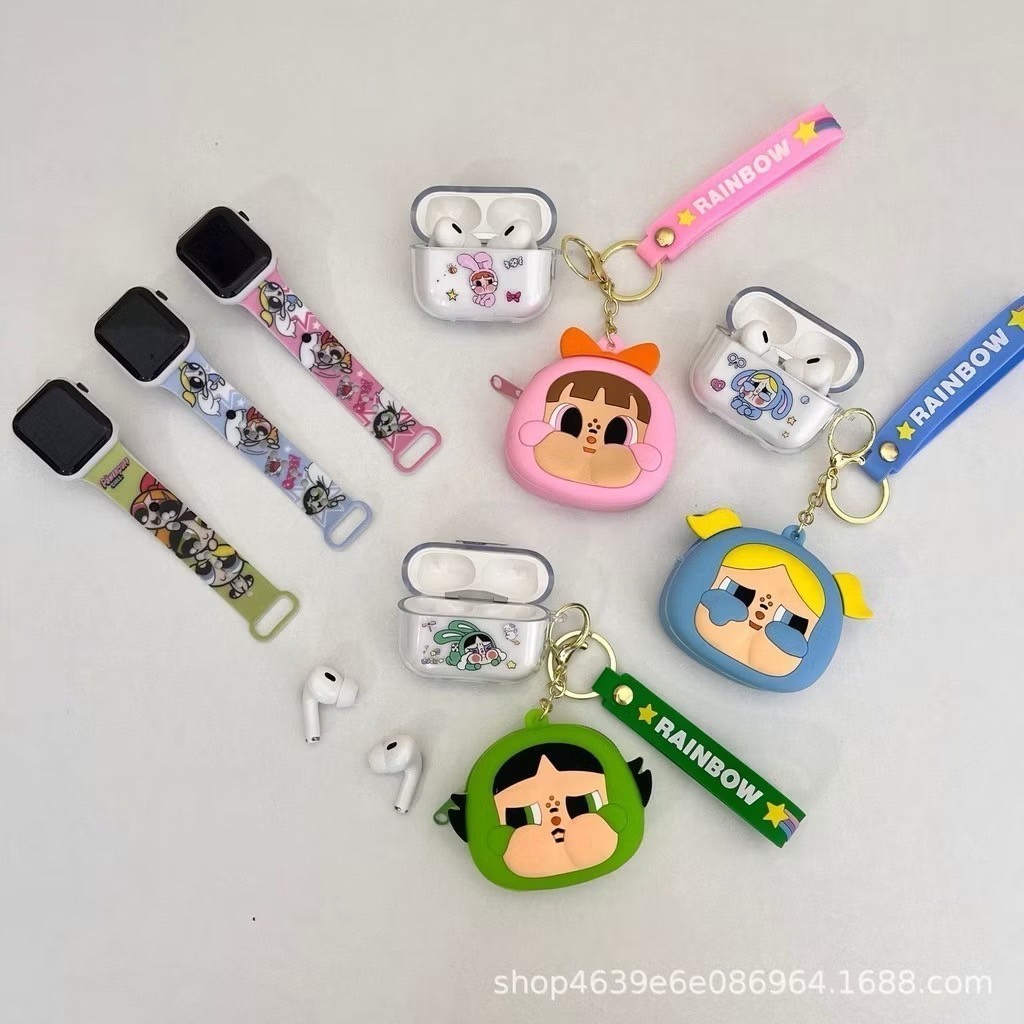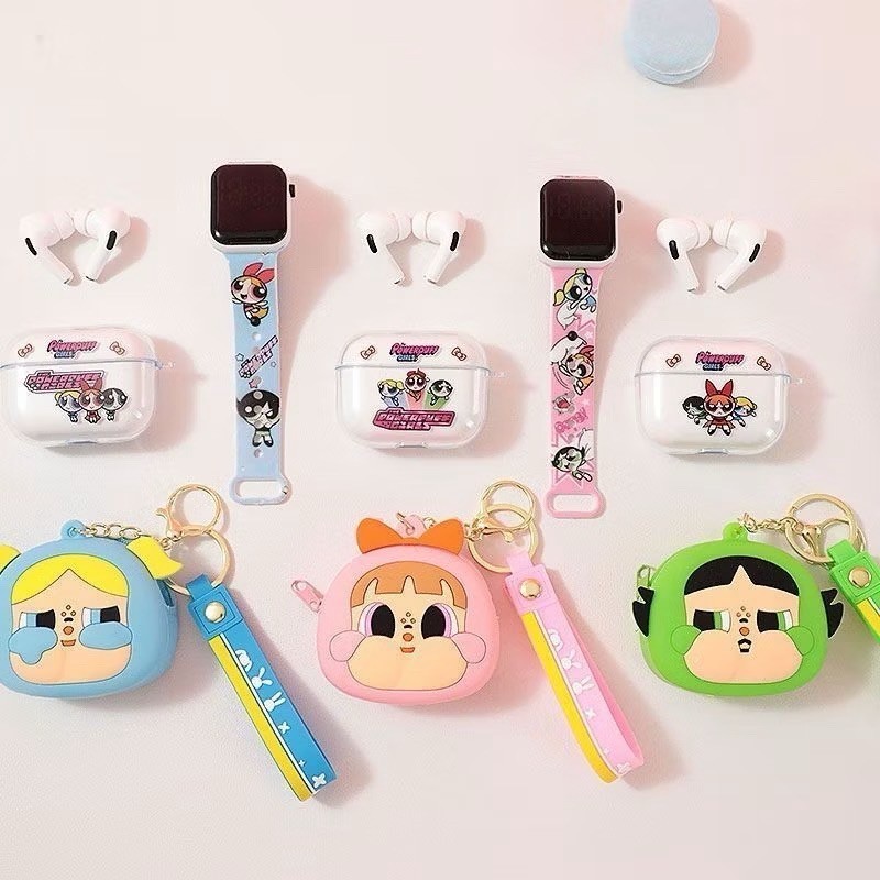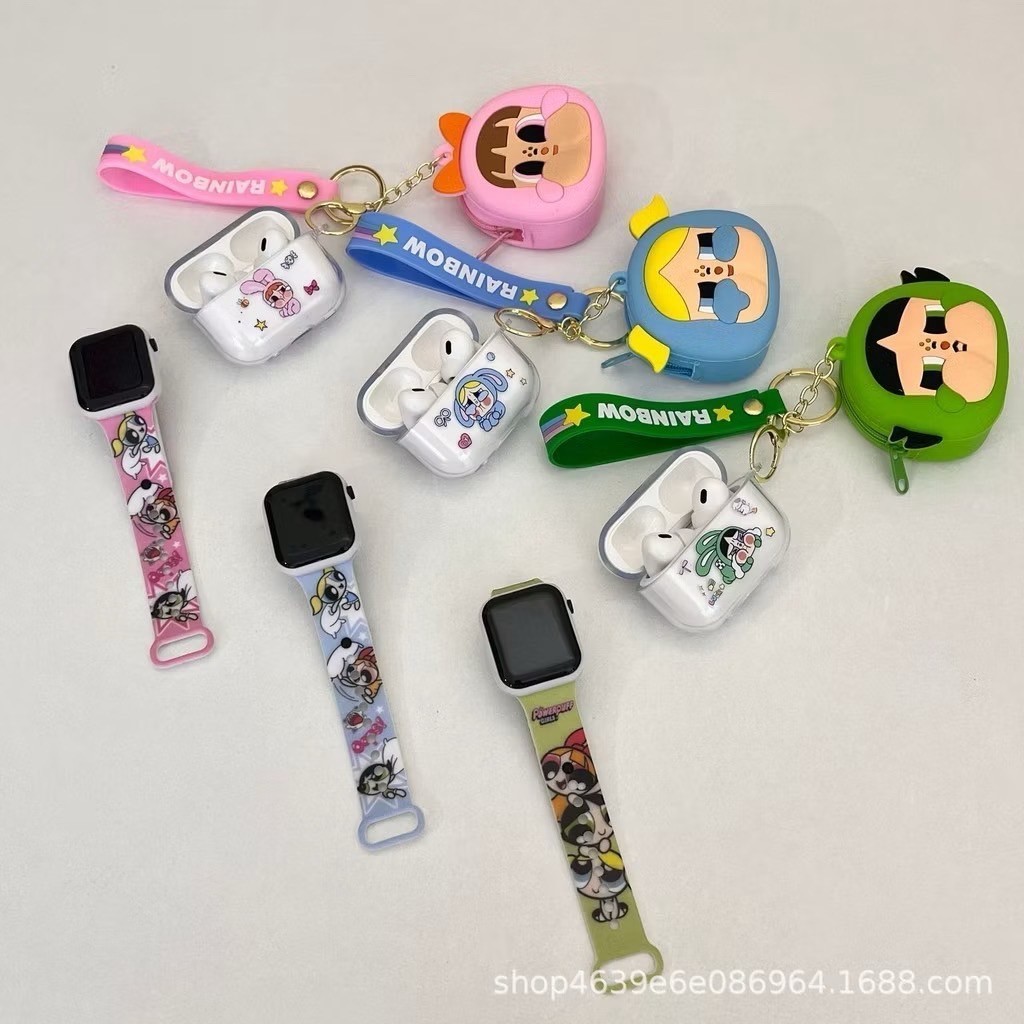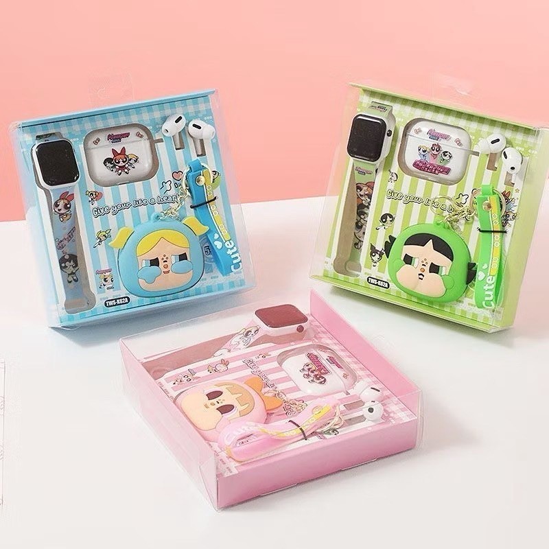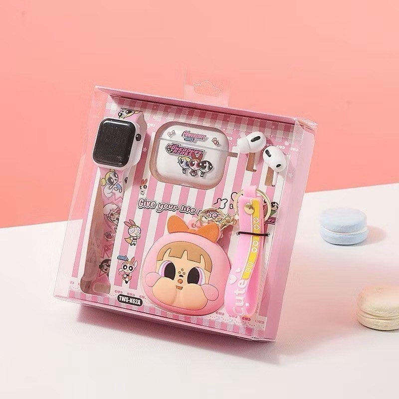 ชุดหูฟังพร้อมเคส crybaby twsบลูทูธ +นาฬิกา พร้อมนาฬิกาหน้าจอดิจิตอล สายซิโคนลายการ์ตูน แถมเคสกระเป๋ายางลายการ์ตูน