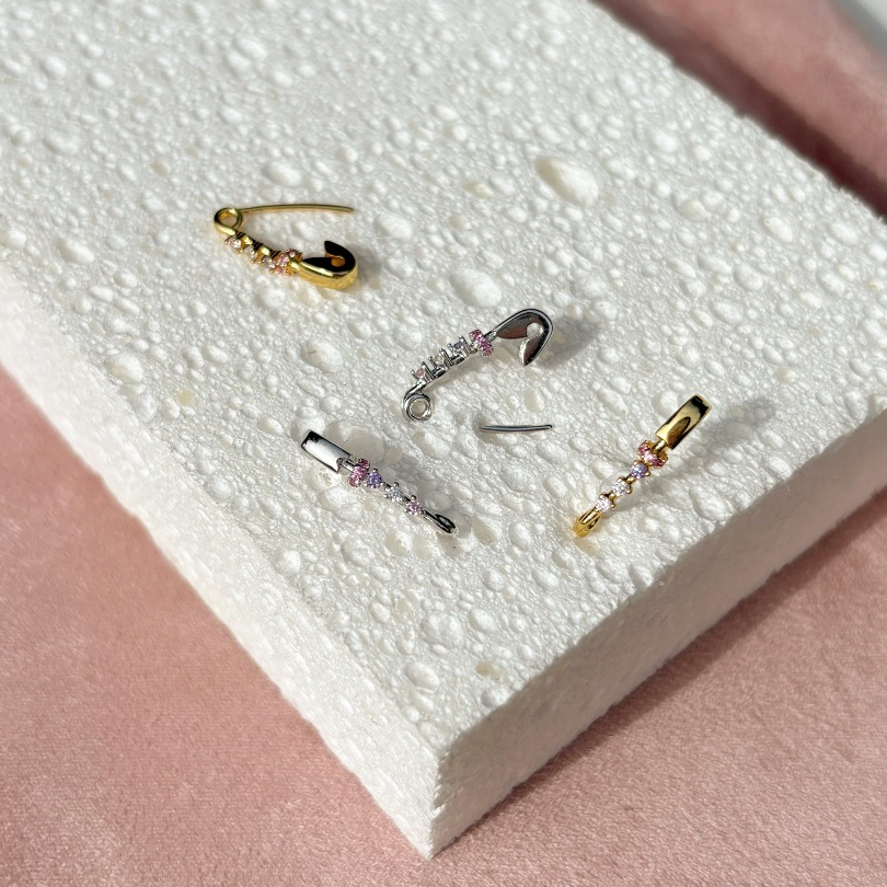 วัสดุทองเหลืองชุบทอง 18k/ชุบโรเดียม เพชร cz นิกเกิลฟรี ผิวแพ้ง่ายใส่ได้ สินค้าไม่ใช่วัสดุกันน้ำ ไม่แนะนำให้ใส่อาบน้ำหรือโดนความชื้นทุกชนิด ควรเช็ดให้แห้งหลังใส่และเก็บในถุงซิปลอคเพื่อถนอม
