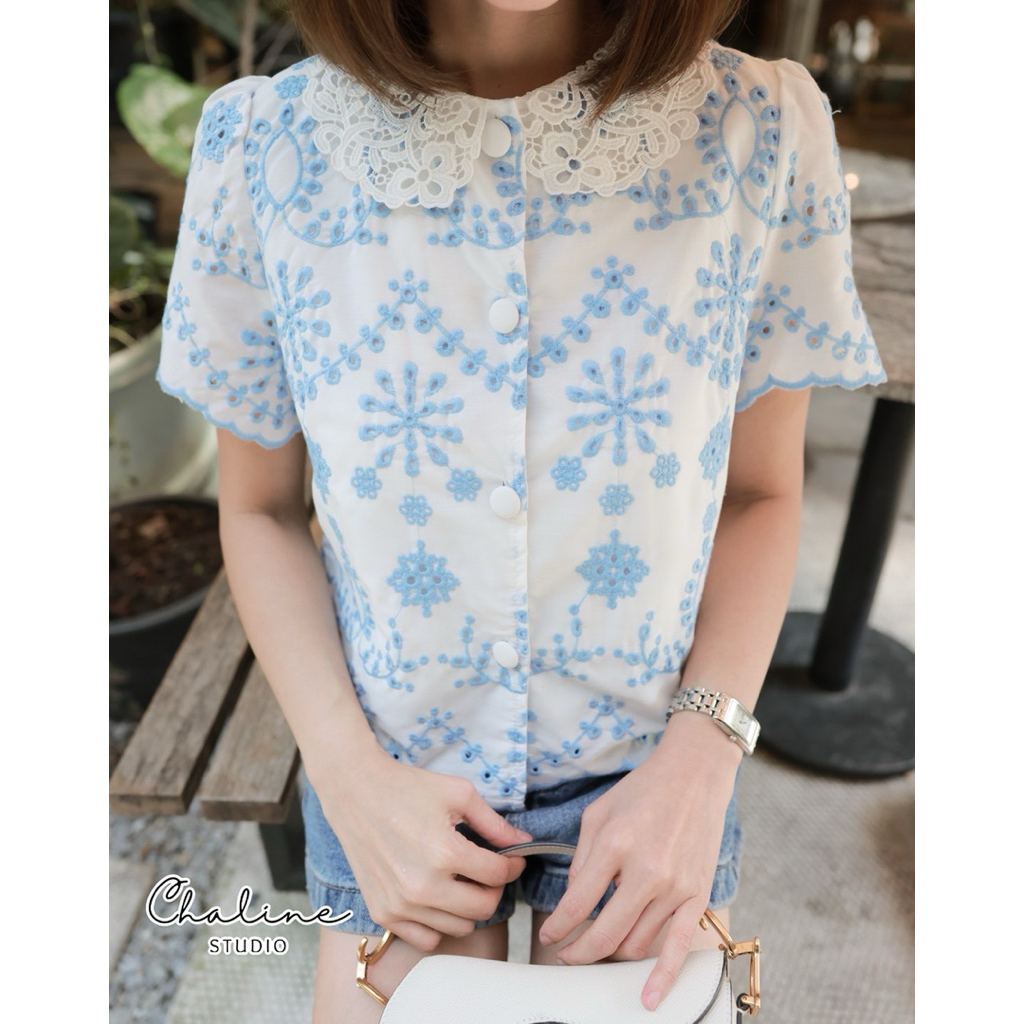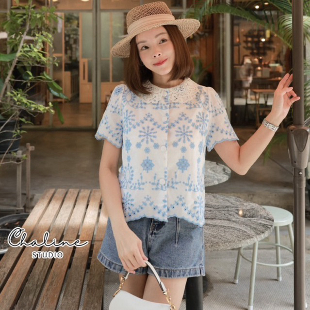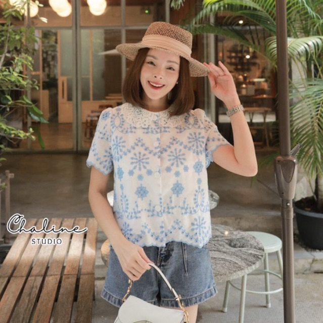 เสื้อคอตตอนเนื้อผ้าปักลายแน่นสวยงามทั้งตัว คอปกลูกไม้ฉลุน่ารัก ชายเสื้อชายแขนเล่นเชิงผ้าสวยงาม สีสวยแกลม แมทกับอะไรก็น่ารัก ใส่ง่ายได้ทุกโอกาส ลูกค้าได้ใส่ต้องเลิฟแน่นอนค่ะ