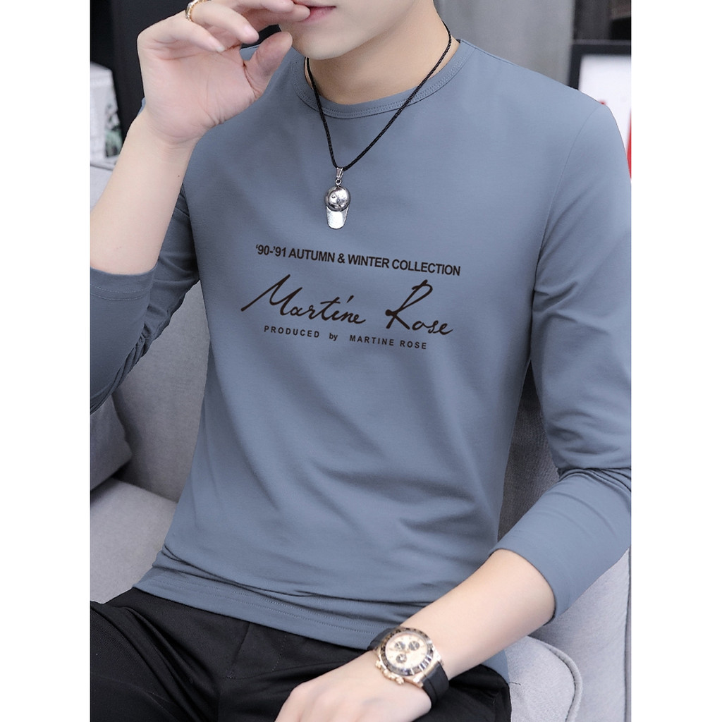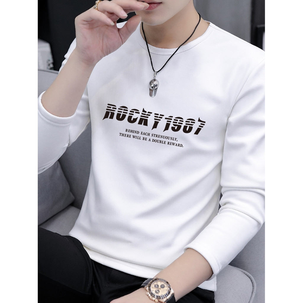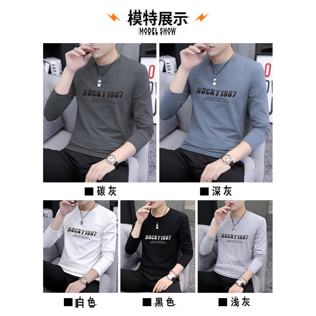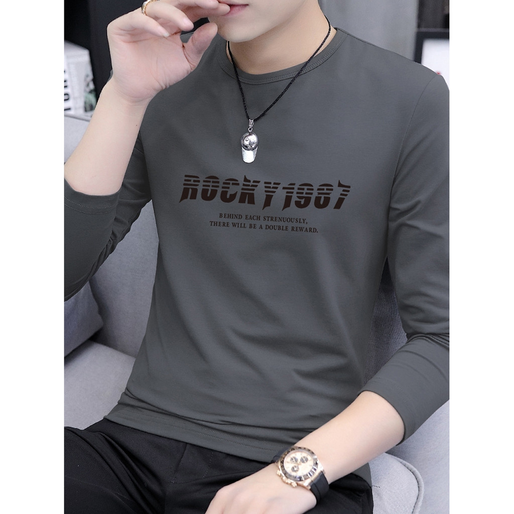 เสื้อยืดคอกลมแขนยาวผู้ชาย – นุ่มพิมพ์อินเทรนด์สไตล์ 2025 ฤดูใบไม้ผลิและฤดูใบไม้ร่วงชั้นฐานและสวมใส่ด้านนอก
