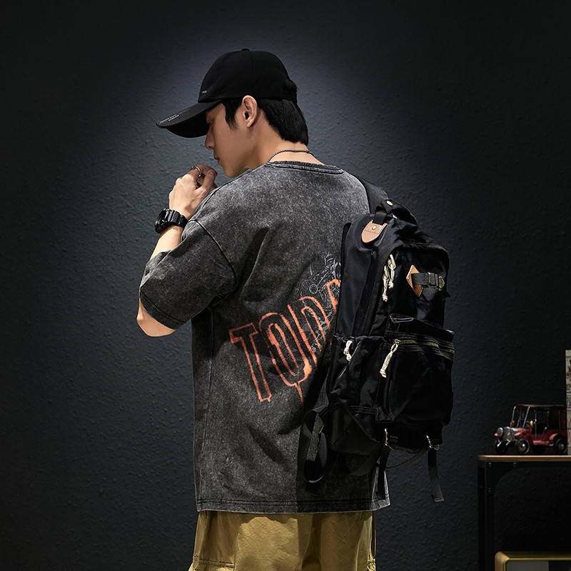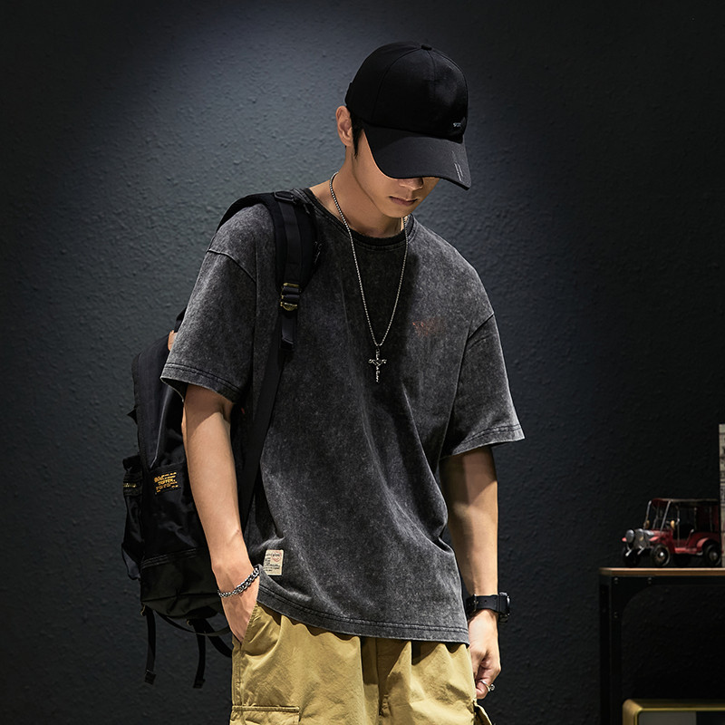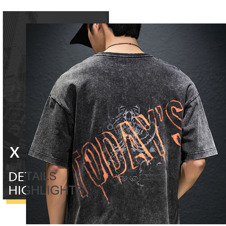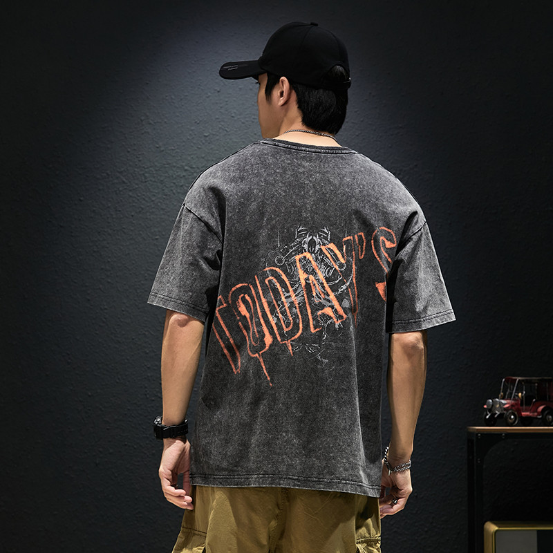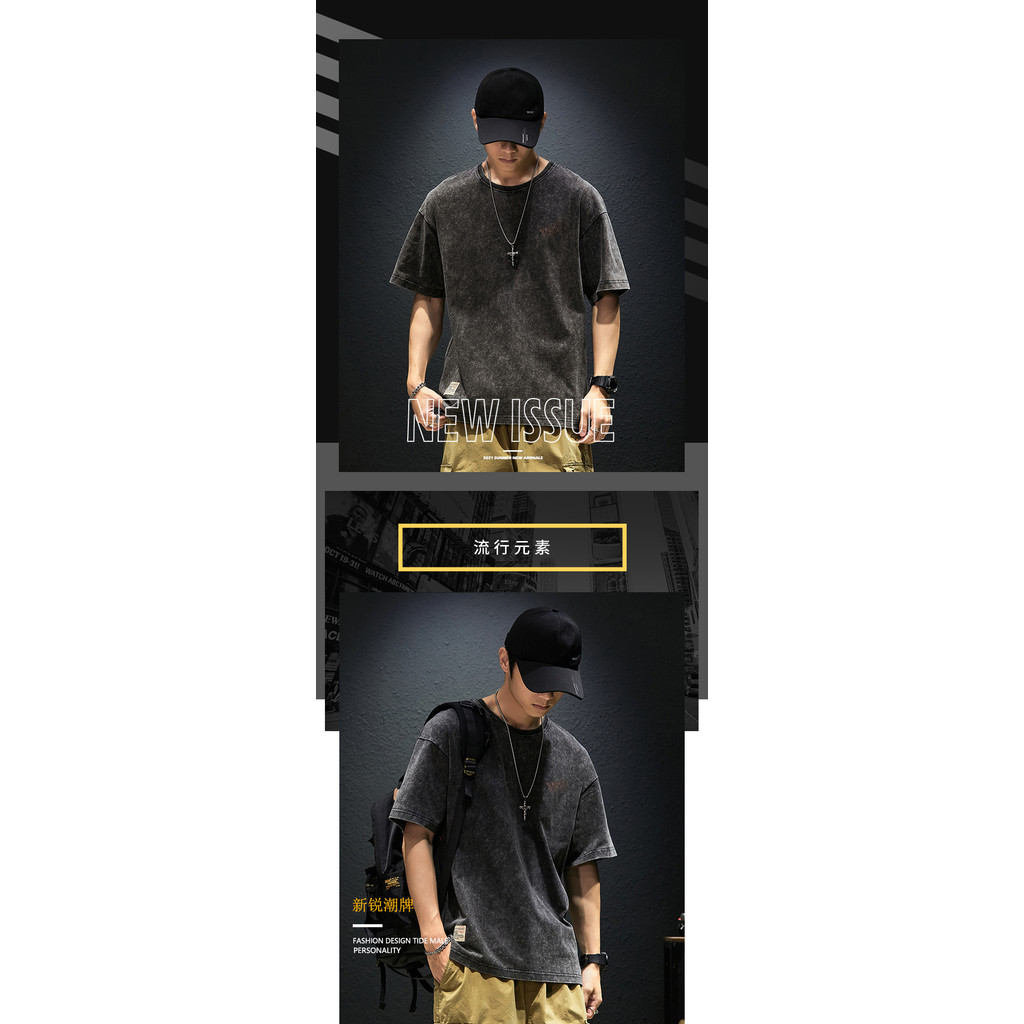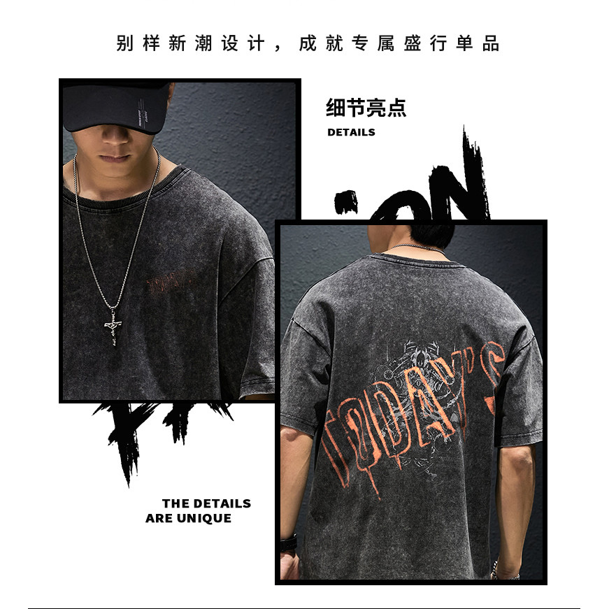 หยิบใส่ตะกร้า2025 NEW Summer Heavy Washed Cotton Short Sleeve T-Shirt for Men Loose Plus Size Ins Trend Illusion Print Top new23 JLEF