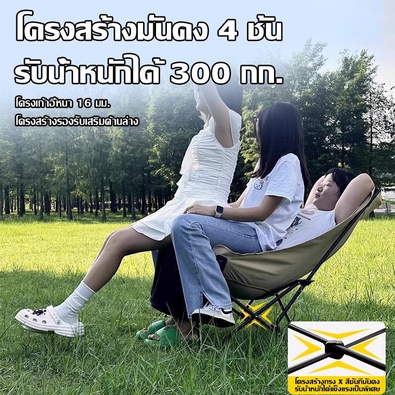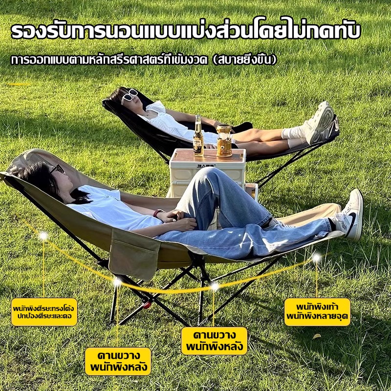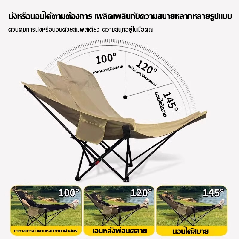 GDE เก้าอี้แคมป์ปิ้ง เกียร์สามปรับได้ เก้าอี้สนาม พับได้ แบบพกพา ปิคนิค แถมถุงเก็บ รับน้ำหนัก 500KG
