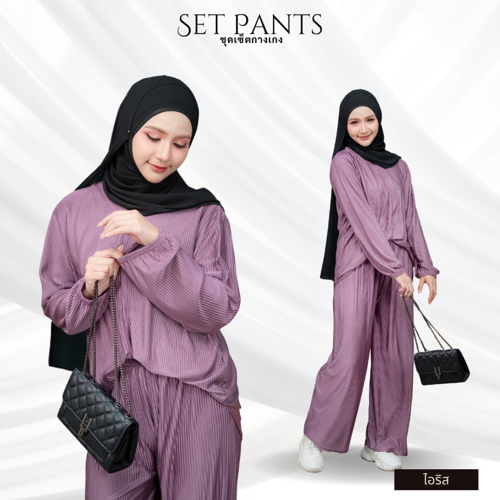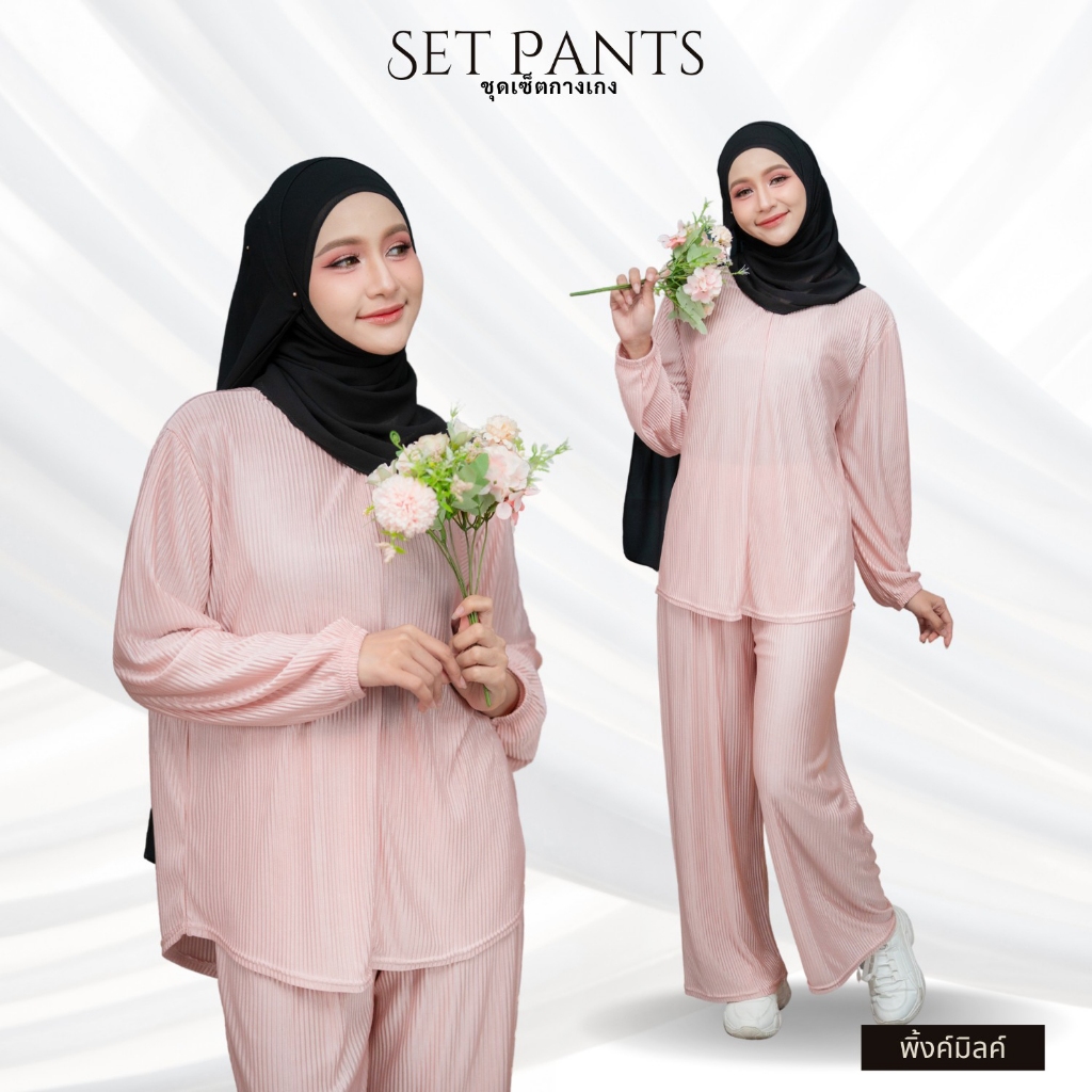 ชุดเซ็ตมุสลิม เสื้อกางเกง มีสไตล์ ผ้ายืดร่องผ้าไม่ร้อน สวมใส่สบาย ได้ในหลายๆโอกาส IN18วาริสมุสลิม