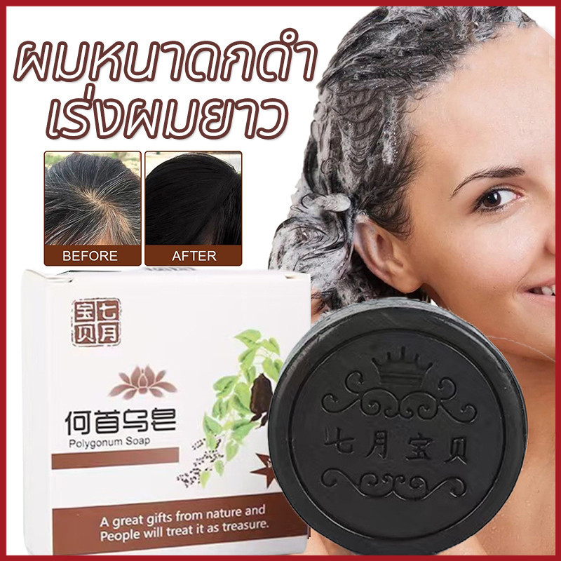 สบู่แชมพู Polygonum Multiflorum สบู่สระผม เชื้อราบนหนังศรีษะ สบู่สระผมรากโสมดำ ลดผมร่วง สบู่รากโสมดำ ผมหนาดกดำ 100g