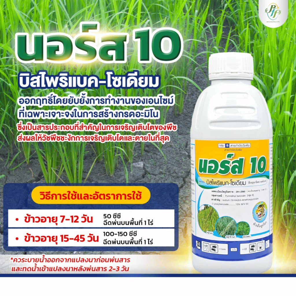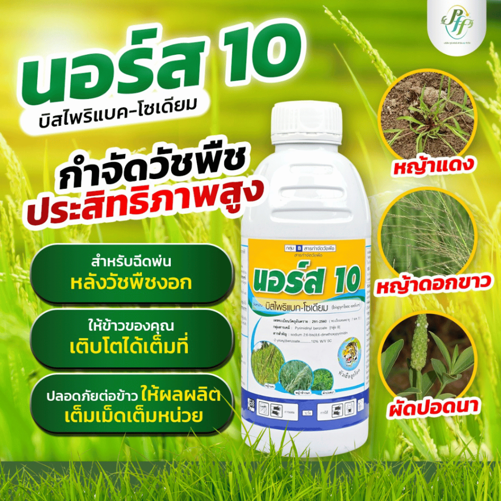 นอร์ส 10 500 ซีซี กำจัดวัชพืชใบแคบ วัชพืชใบกว้าง กก ญ้าข้าวนก หญ้าดอกขาว ผักปอดนา หนวดปลาดุก กกทราย กกขนาก