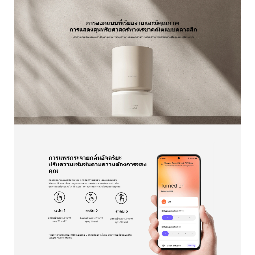 Xiaomi Smart Scent Diffuser สมาร์ทเครื่องกระจายกลิ่นหอม การชาร์จหนึ่งครั้งใช้เวลาประมาณ 50 วัน