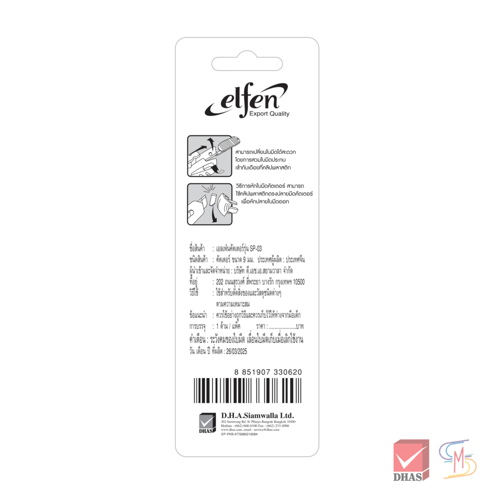 Elfen เอลเฟ่น คัตเตอร์ รุ่น SP-03 9 มม. และ รุ่น LP-03 18 มม. จำนวน 1 อัน