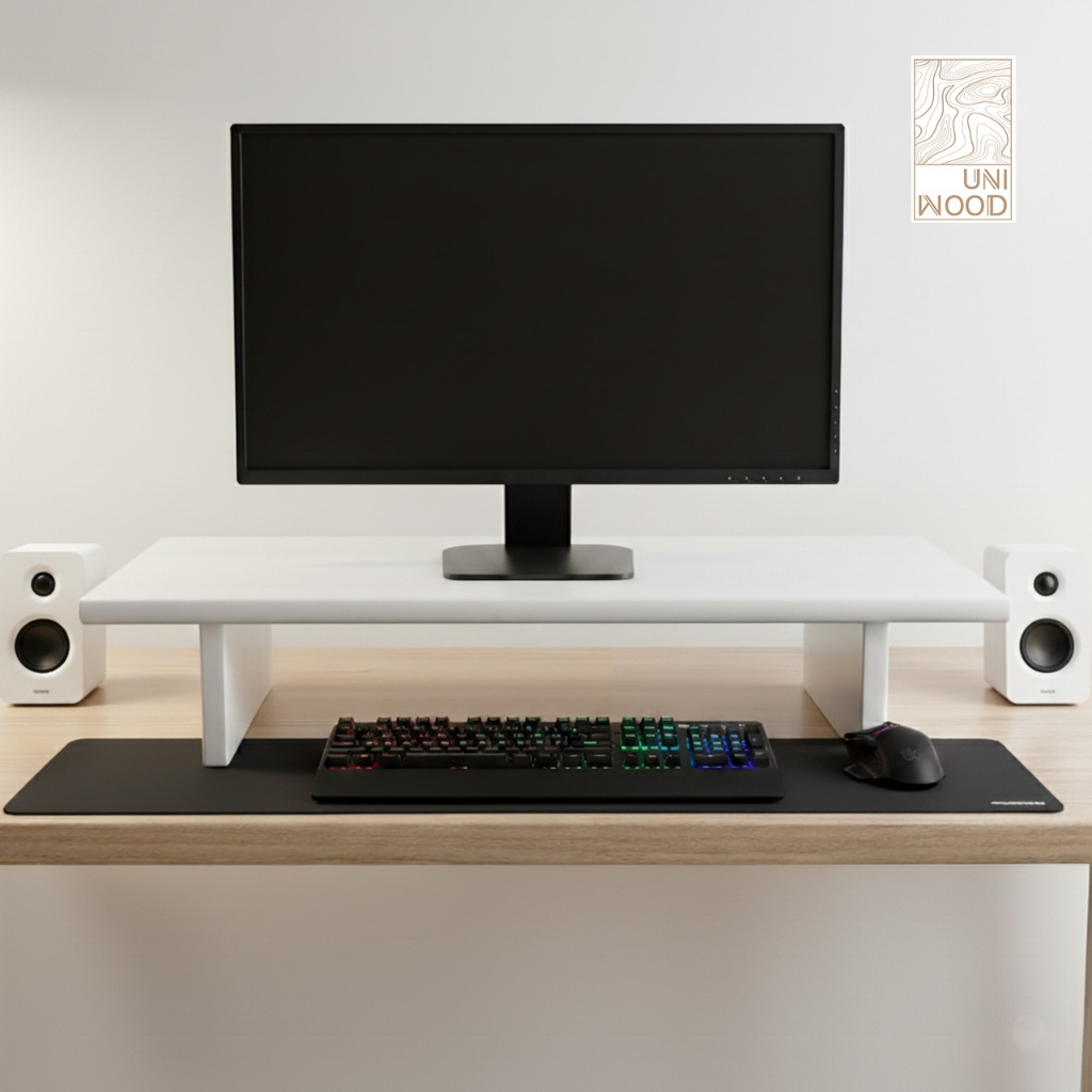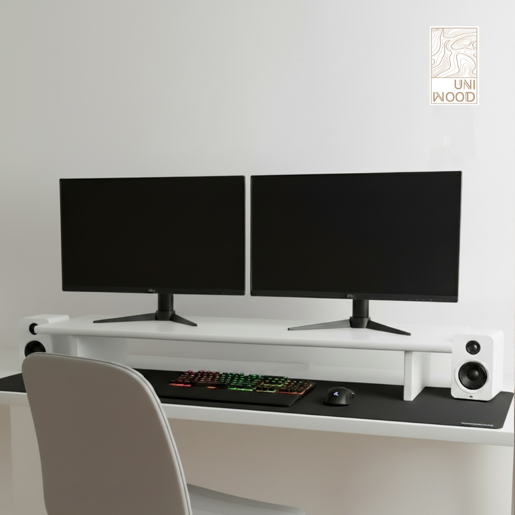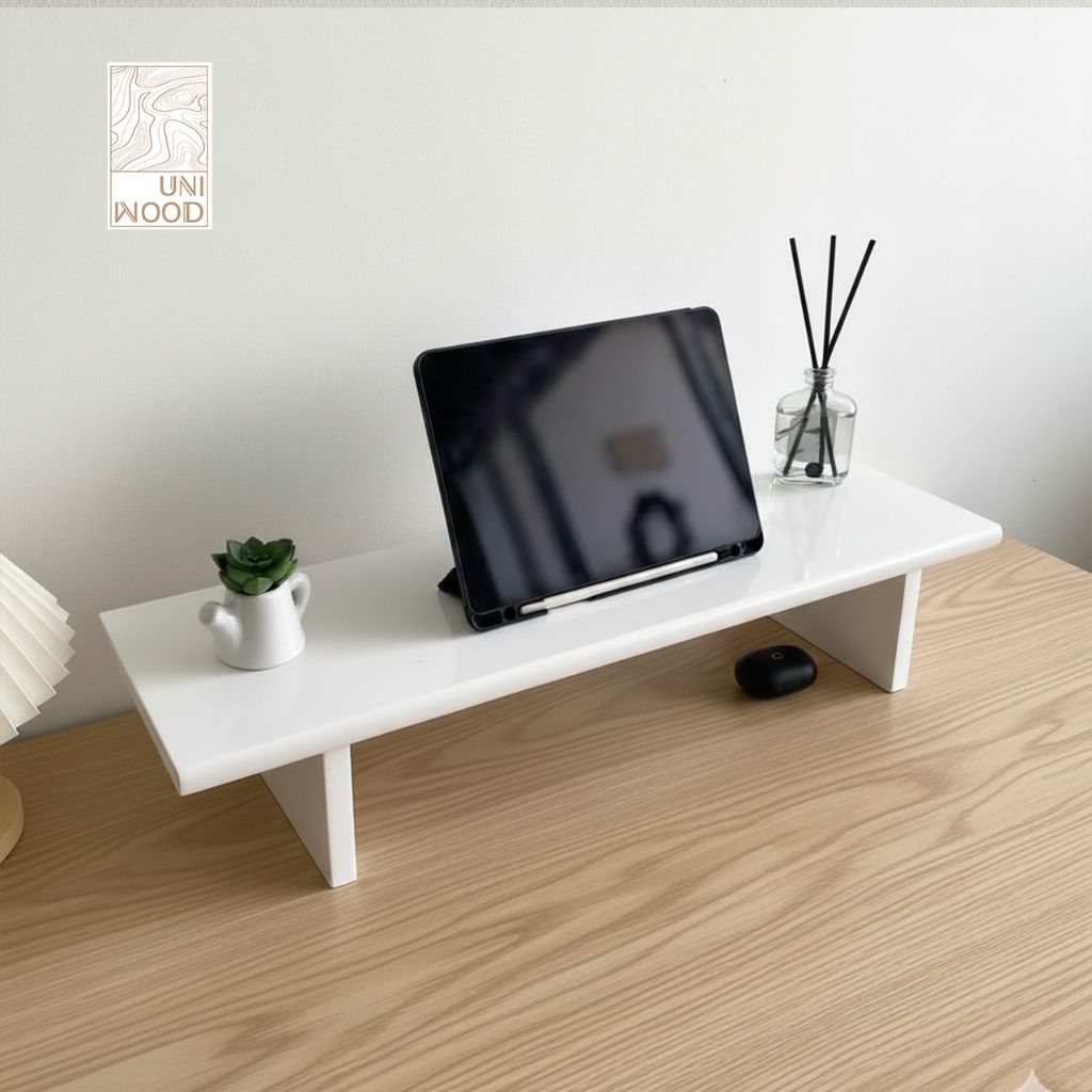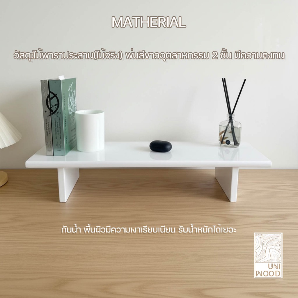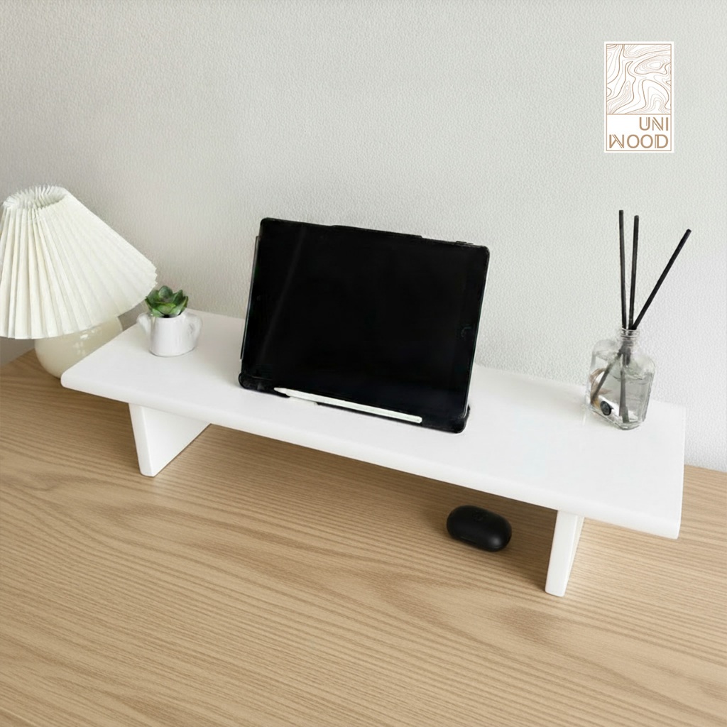 แท่นวางจอคอม ชั้นวางของอเนกประสงค์ ผลิตจากไม้ยางพาราประสานแท้ เกรด A 100% พ่นสีขาวพรีเมี่ยม