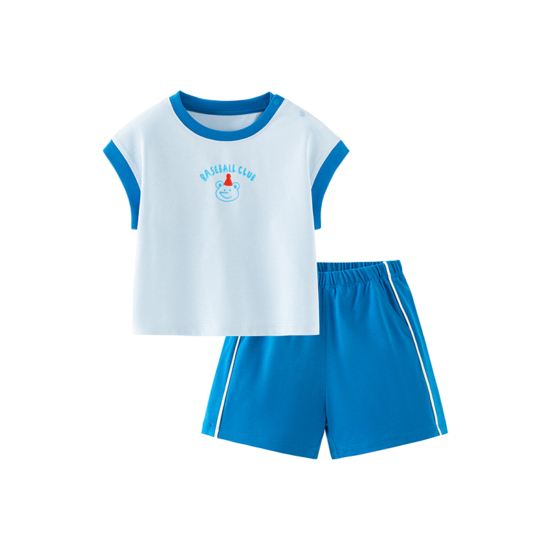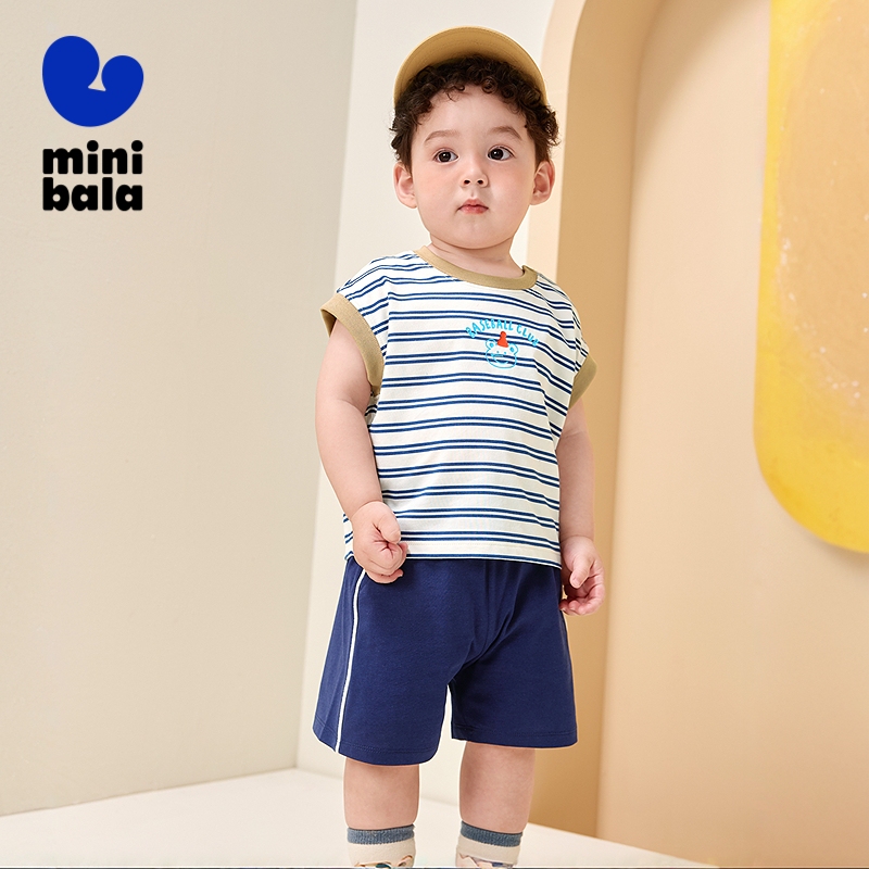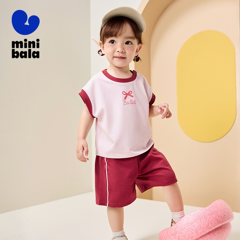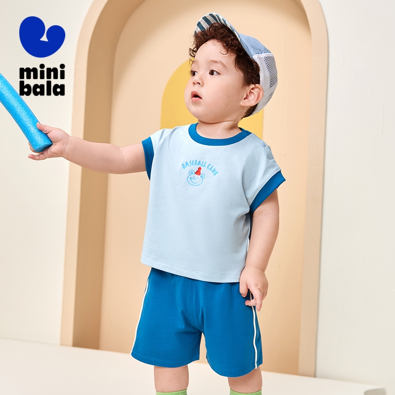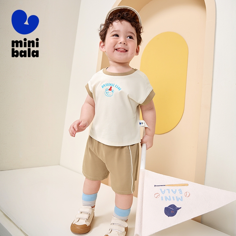 Minibala ชุดแขนสั้นเด็กฤดูร้อนลายเสื้อยืด Unisex กางเกงขาสั้นใหม่ Cool Suit