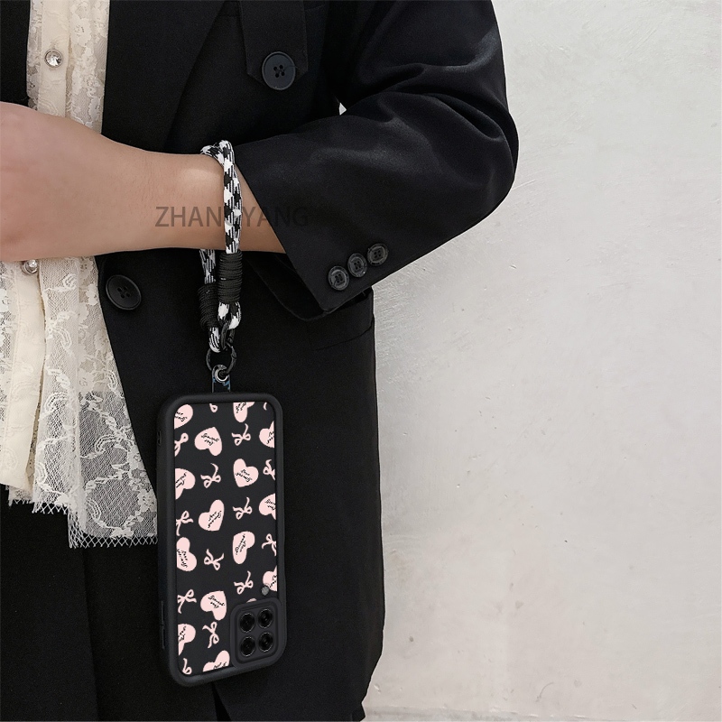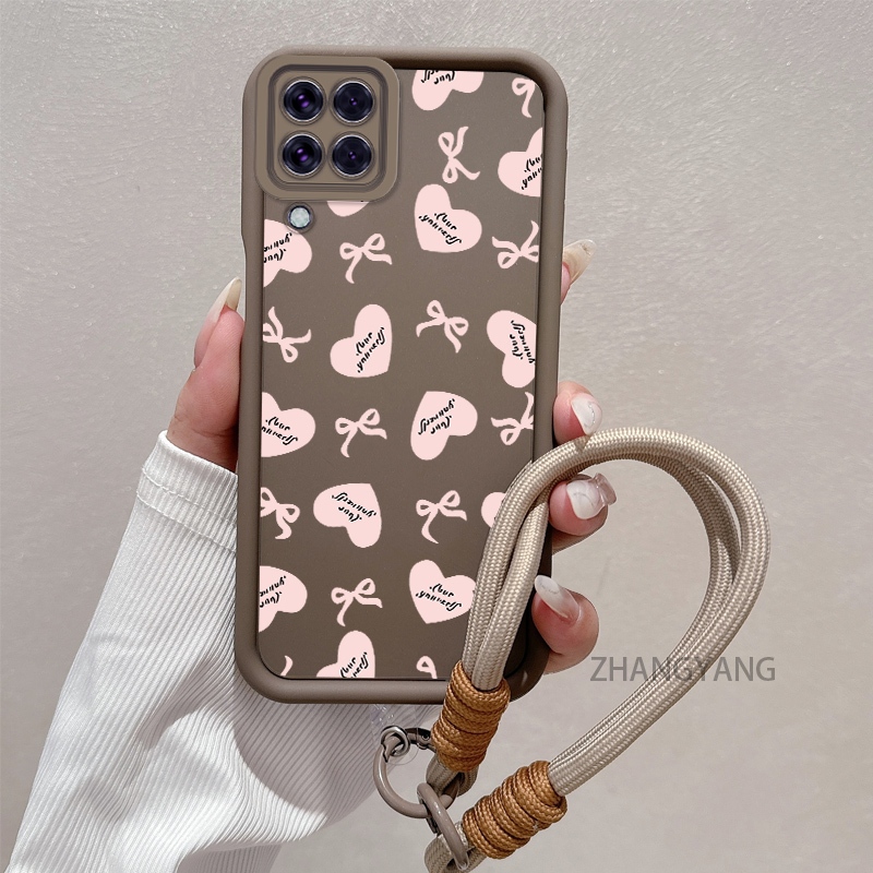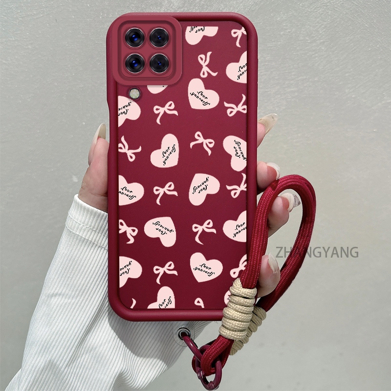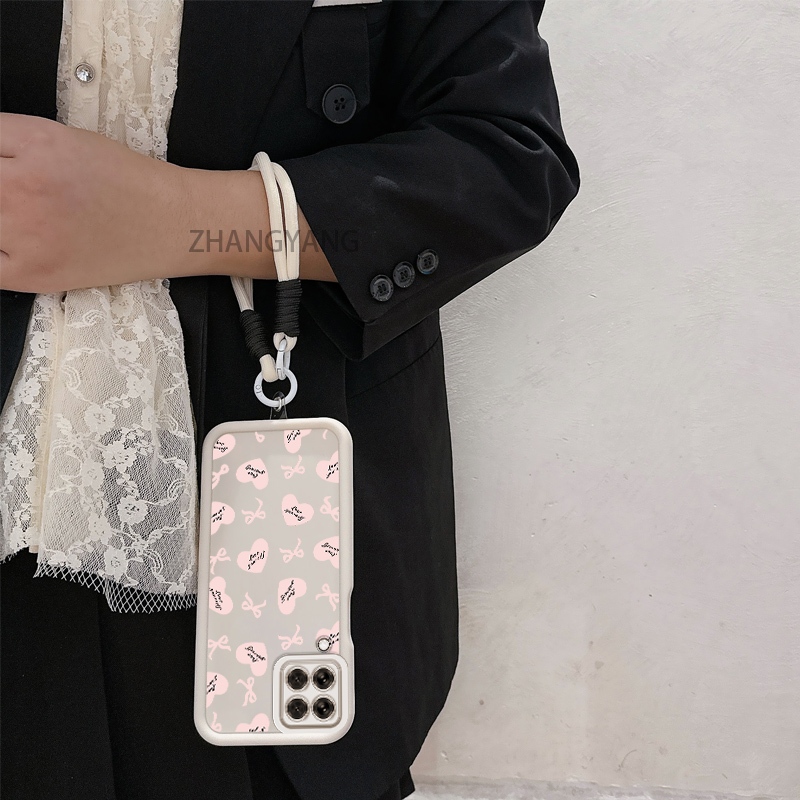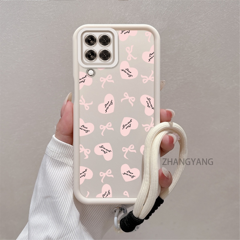 SAMSUNG สําหรับSamsung A12 A22 4G A22 5G M12 M22 M32 ซิลิโคนกันกระแทกเคสโทรศัพท์ที่มีความงามสีชมพูหัวใจรูปแบบนุ่มส่วนบุคคลเชือกแขวน