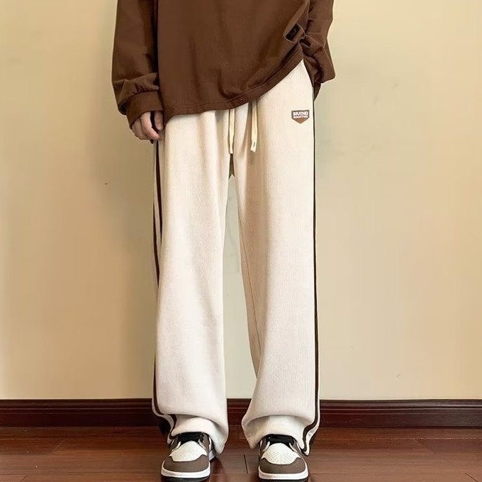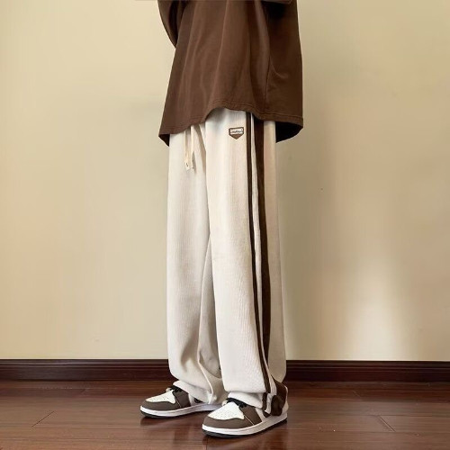 ProMan-กางเกงวอร์มลายทางผู้ชายผู้ชาย ท่อตรง สีเย็บ ขากว้าง มีเนื้อที่มาก