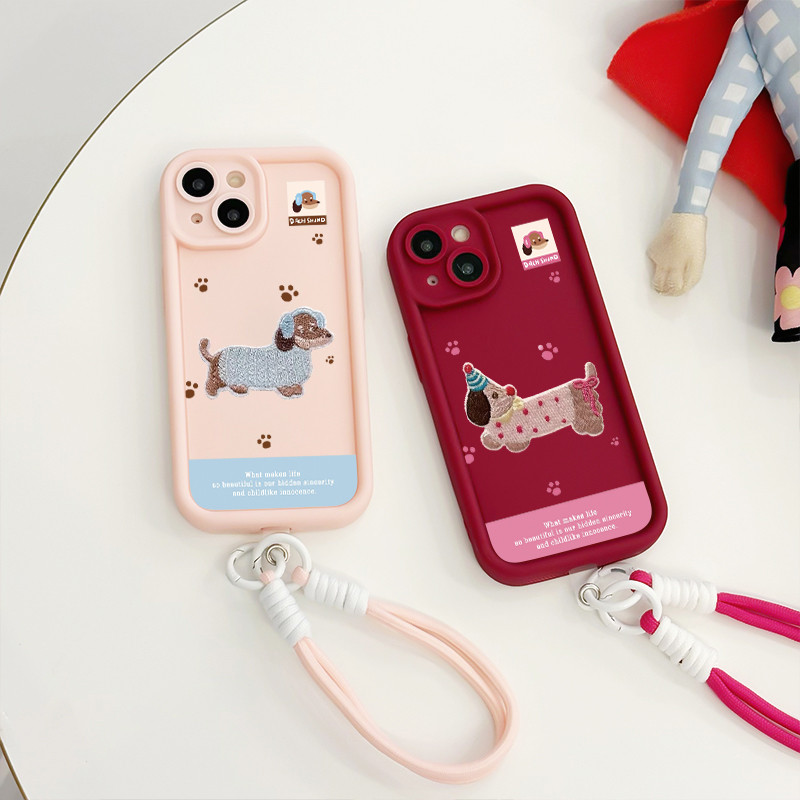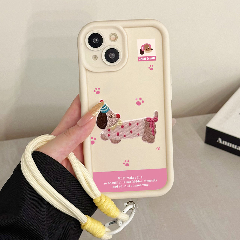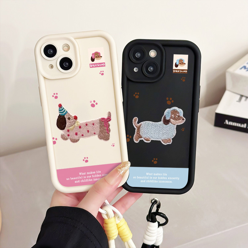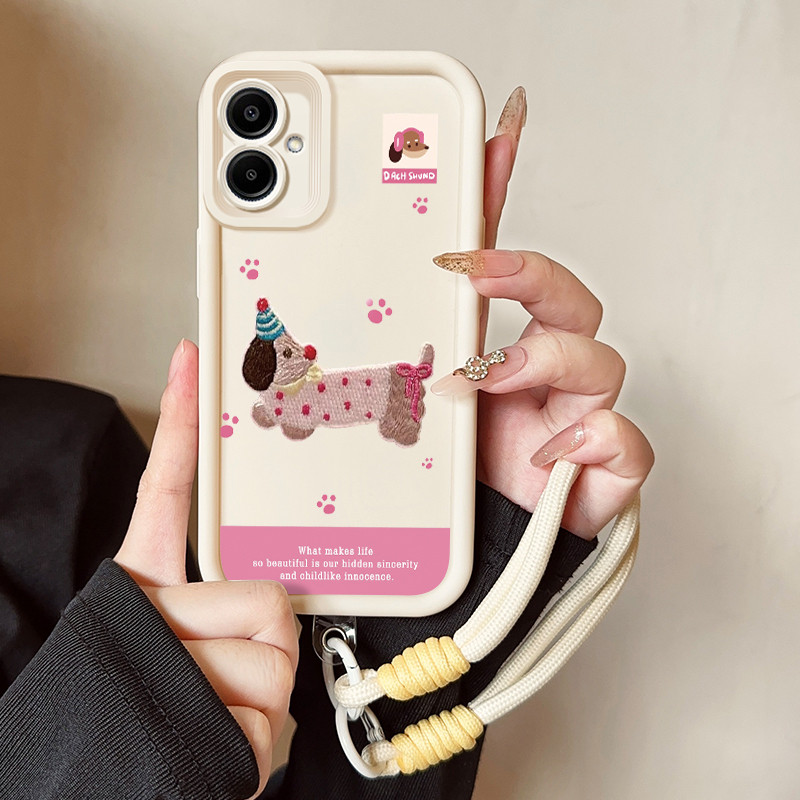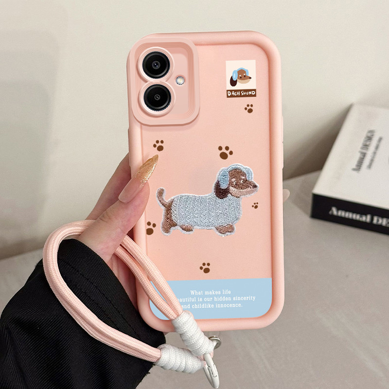 เคสสำหรับ Samsung A06 4G เคสโทรศัพท์สุนัขสายคล้องสามสีซิลิโคนกันกระแทก