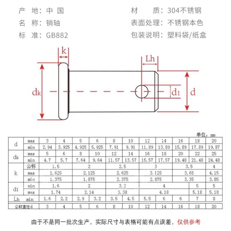 ยี่ห้อ: WDY โมเดล: Pin Shaft พร้อมรู สแตนเลสสตีล 304 วัสดุ: สแตนเลส 304 สถานที่กำเนิด: จีนแผ่น