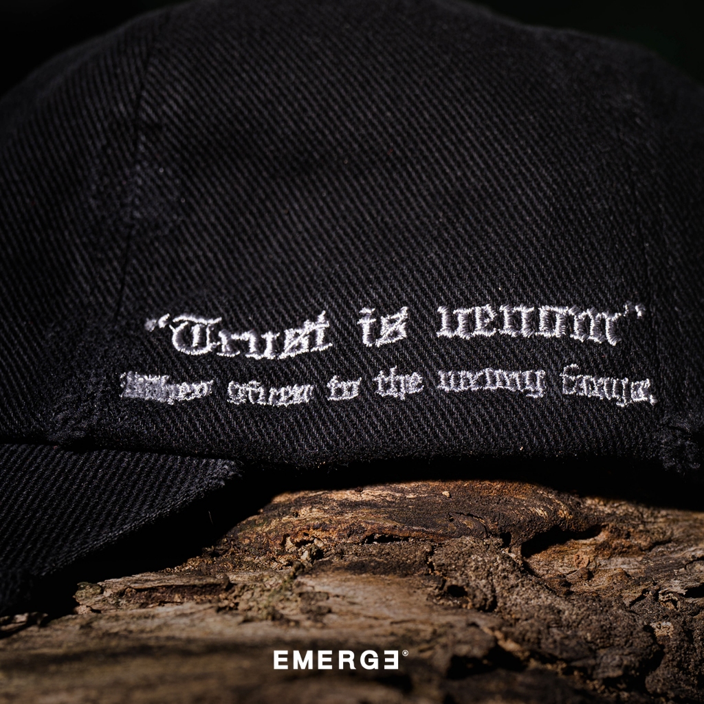 – ปักคำด้านหลัง “Trust is venom / Never swear to the wrong fangs.”