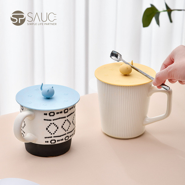 ฝาแก้ว ฝาขวดน้ํา ญี่ปุ่นซิลิโคนถ้วยฝาสามมิติแมวถ้วยน้ําฝาอาหารเกรดการ์ตูนสร้างสรรค์ซิลิโคนถ้วยฝาป้องกันฝุ่นรั่วถ้วยน้ํา