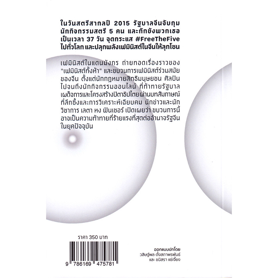 เฟมินิสต์ในแดนมังกร : บันทึกการต่อสู้ของผู้หญิงจีนยุคใหม่หนังสือที่สะท้อนพลังเฟมินิสต์และการเมืองร่วมสมัยในประเทศจีน! ในปี 2015 ซึ่งตรงกับวันสตรีสากล โลกทั้งโลกจับตามองจีน เมื่อรัฐบาลจีนตัดสินใจกักขังนักกิจกรรมสตรี 5 คน เป็นเวลา 37 วัน เพียงเพราะพวกเธอจ