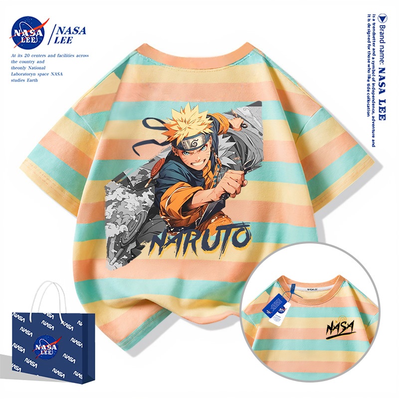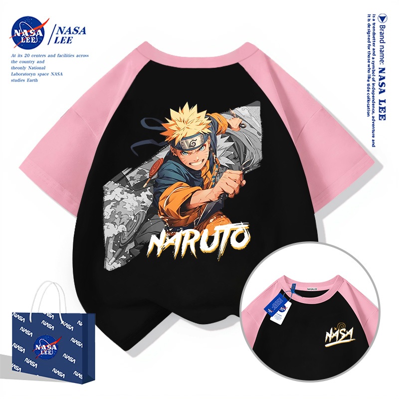 【ของพร้อมส่ง】เสื้อยืดเด็ก NASA สีดำ ผ้าฝ้ายคุณภาพสูง ลายนารูโตะ (Naruto) สำหรับเด็กชาย-เด็กหญิง ดีไซน์ทันสมัย ระบายอากาศดี