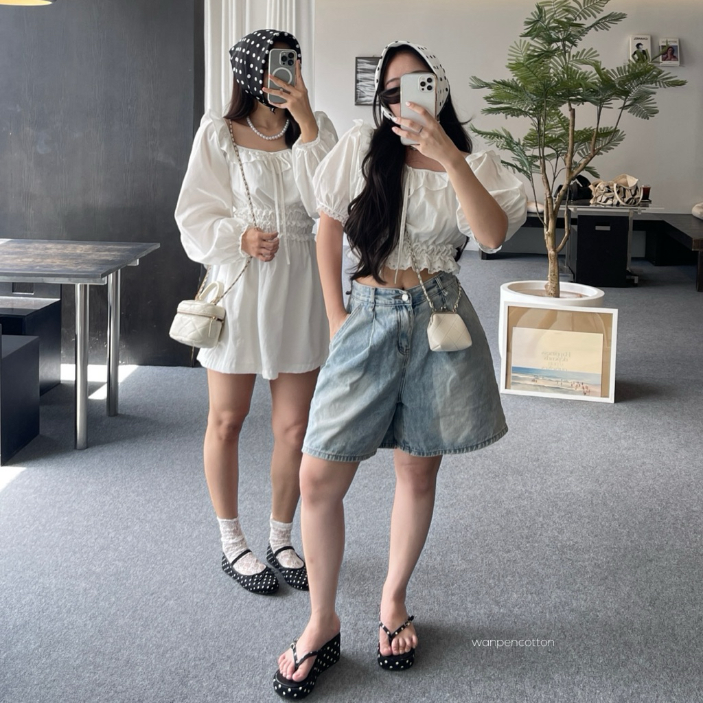 เสื้อครอปแขนตุ๊กตา และเดรสสั้นแขนยาว