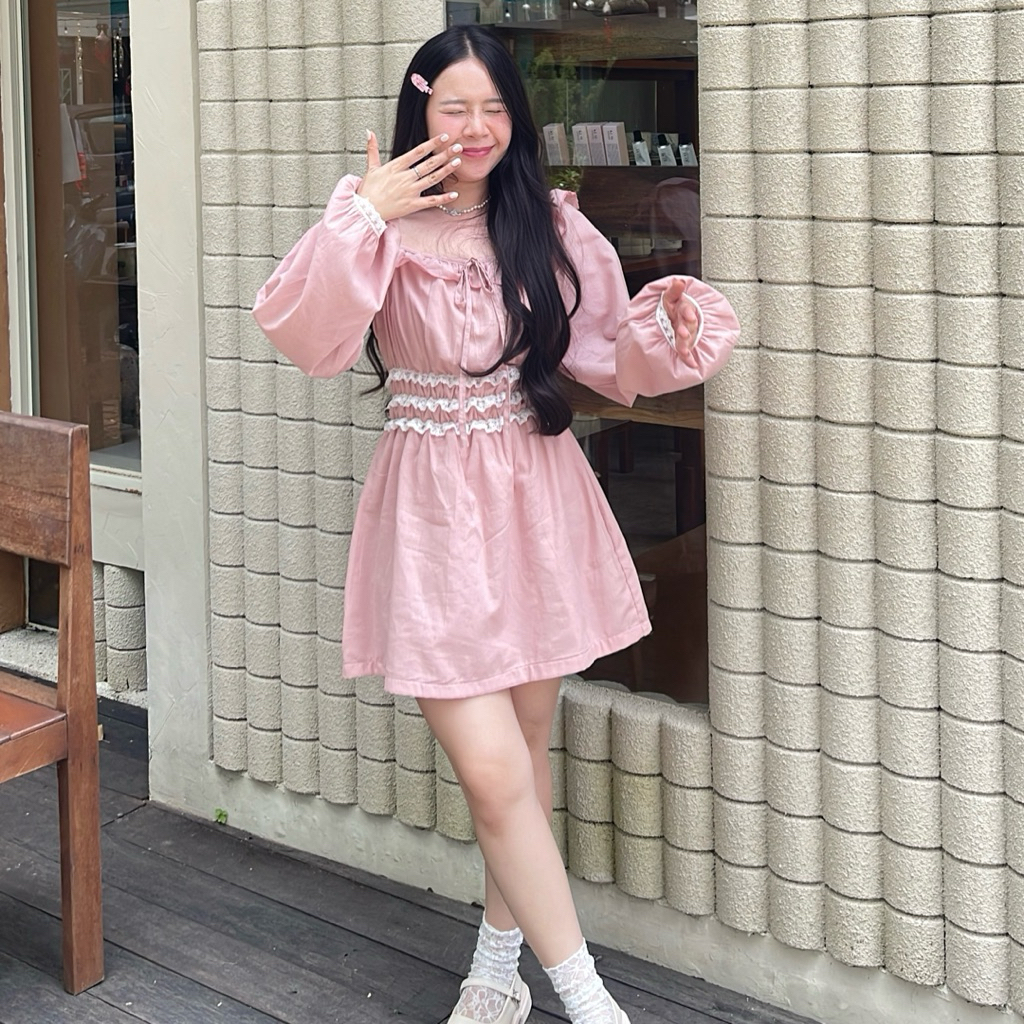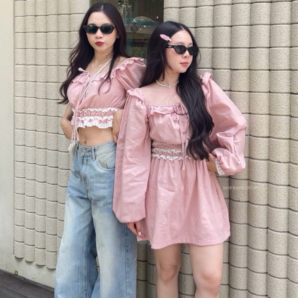 หยิบใส่ตะกร้าKara top & dress เสื้อแขนตุ๊กตา เดรสสั้นแขนยาว แต่งระบายลูกไม้
