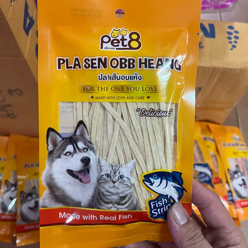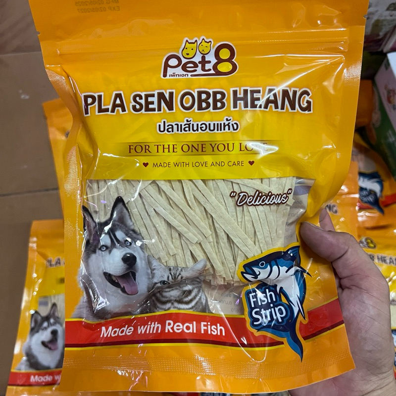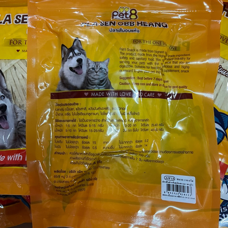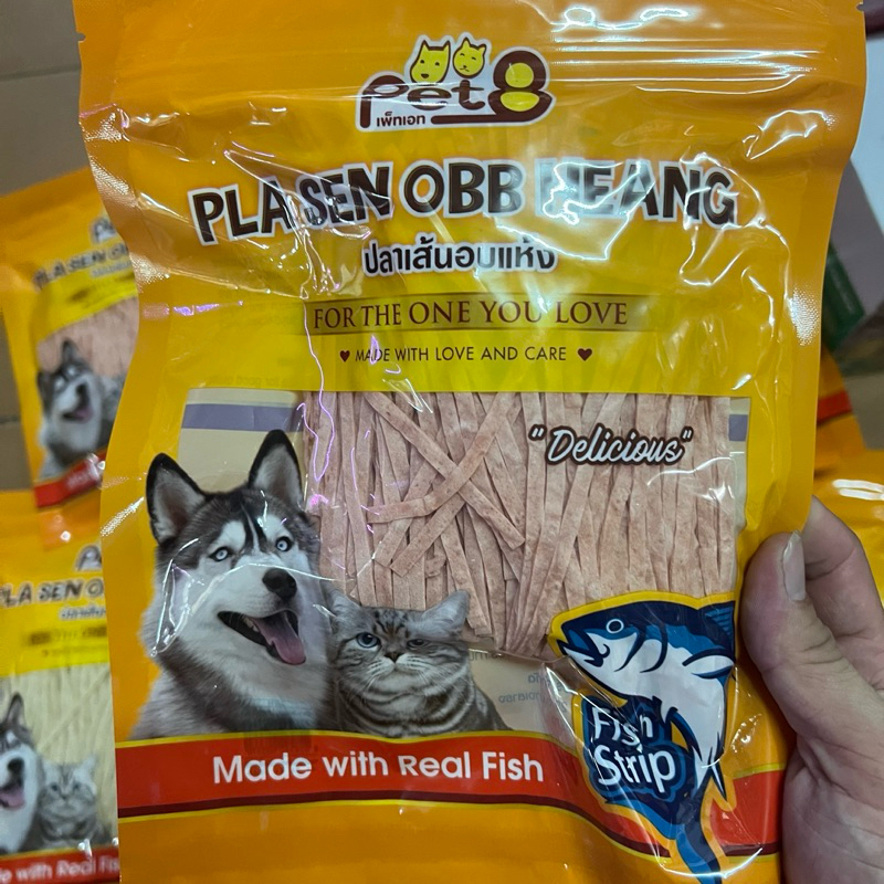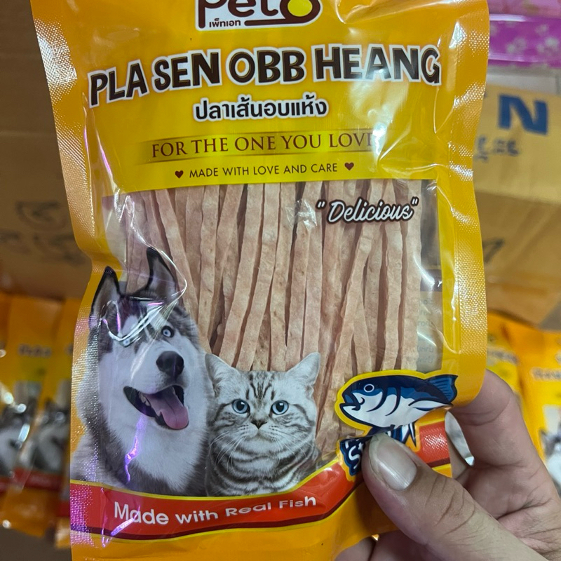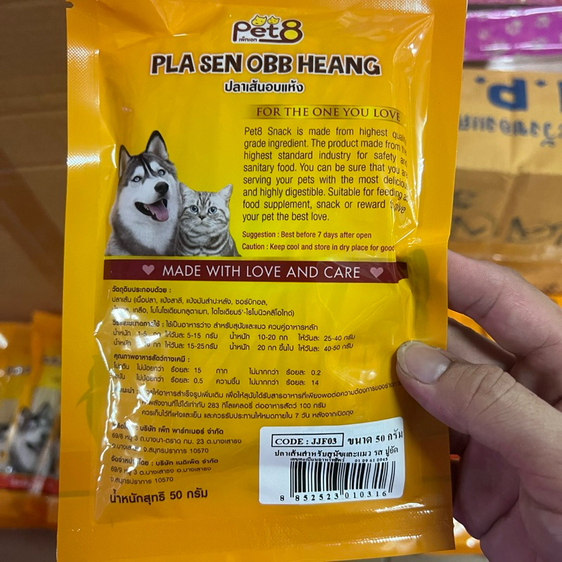 ขนมปลาเส้นทาโร่น้องแมวน้องสุนัข มีทั้งรสปลาธรรมชาติและแต่งกลิ่นปูอัด กลิ่นหอมน่าทาน สินค้าขายดีประจำร้าน