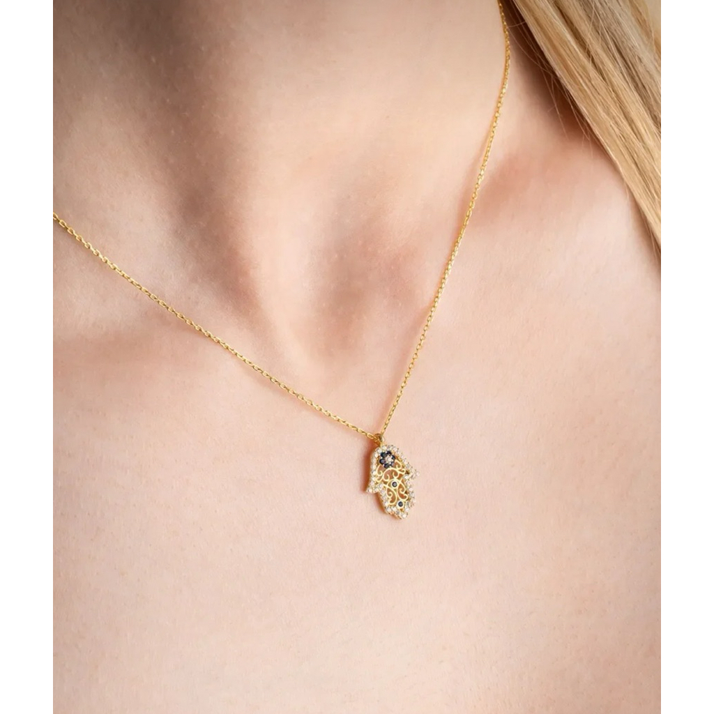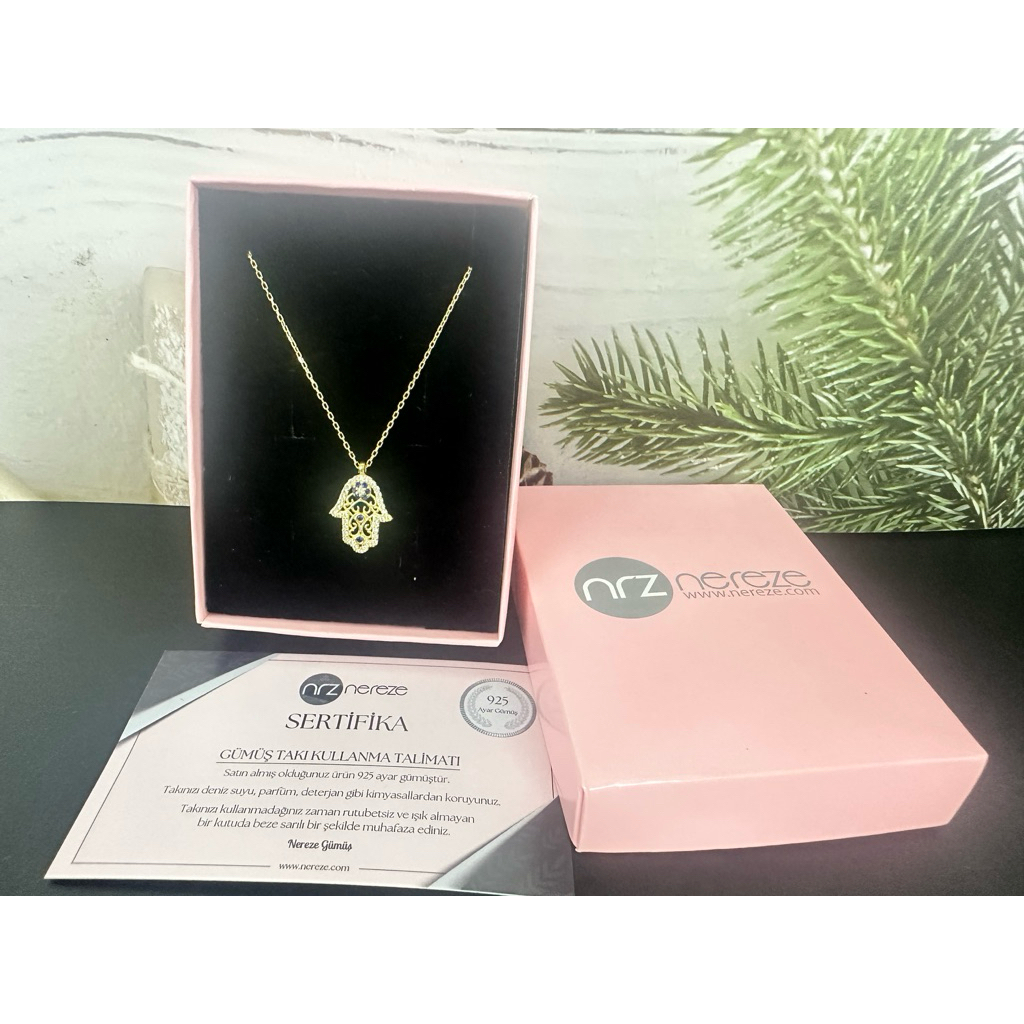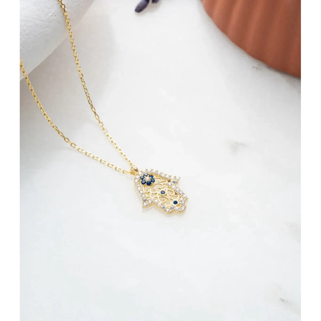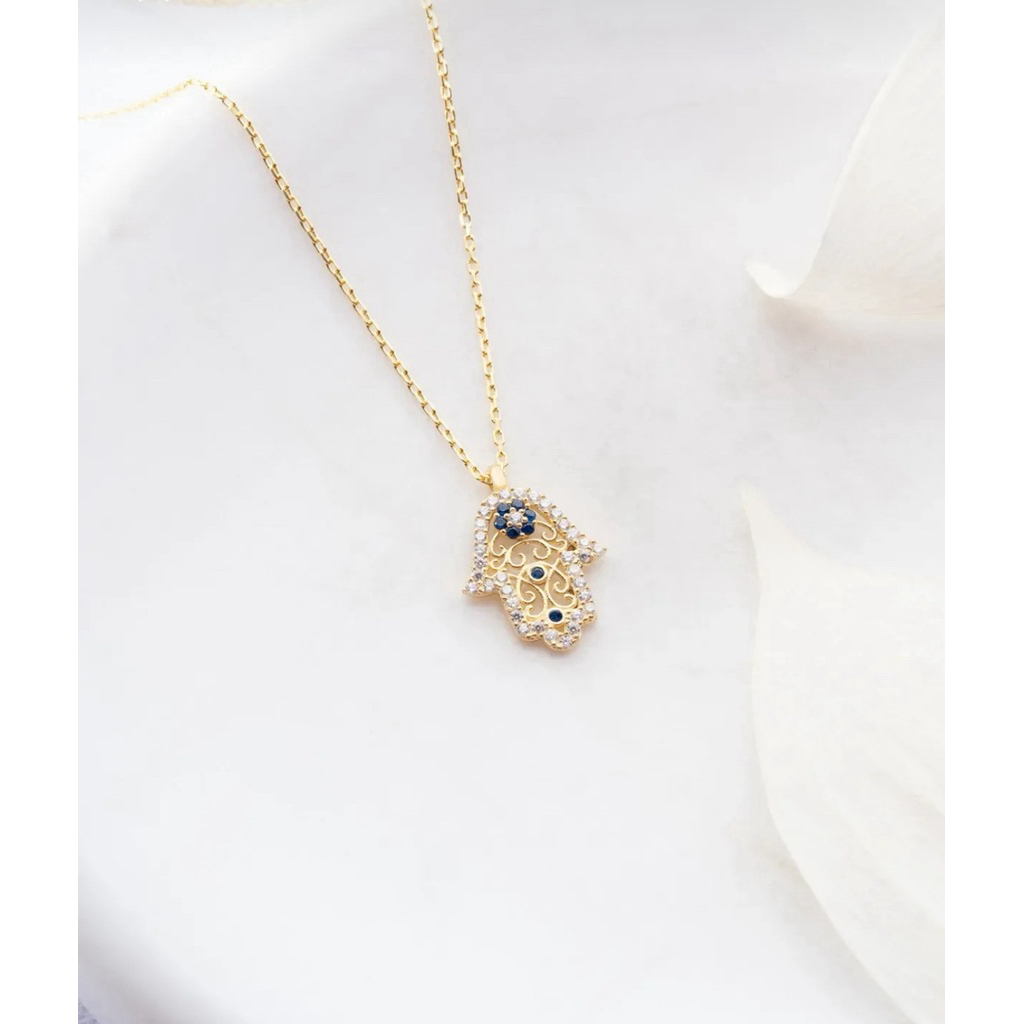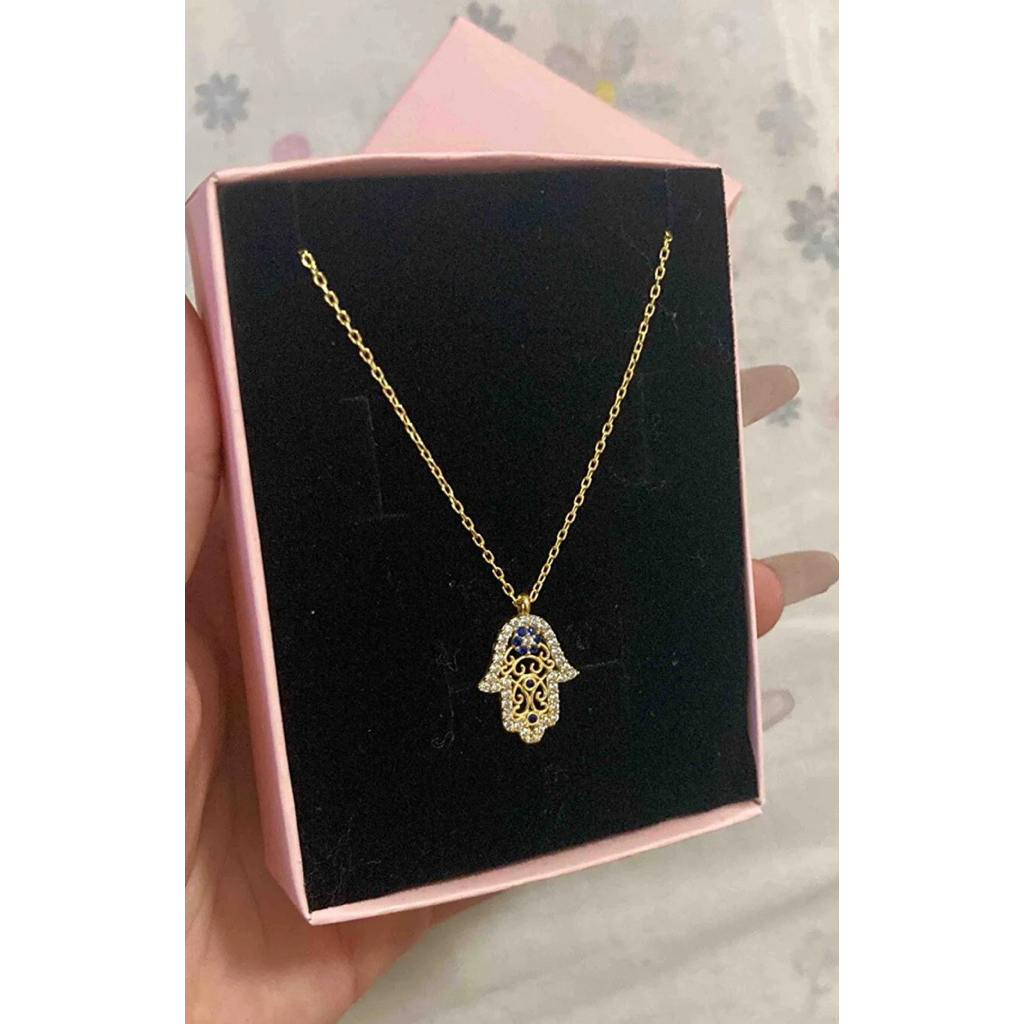 สร้อยคอ Evil Eye Hamsa Amulet 🪬 925 Sterling Silver Gold แท้จากตุรกี
