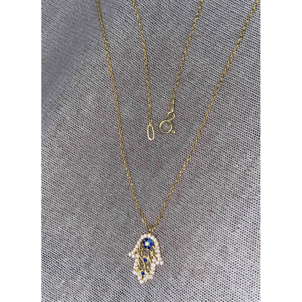 หยิบใส่ตะกร้าสร้อยคอ Evil Eye Hamsa Amulet 🪬 925 Sterling Silver Gold แท้จากตุรกี ความยาว 42 cm
