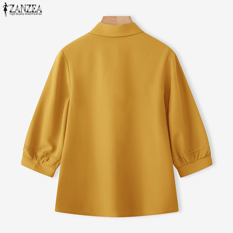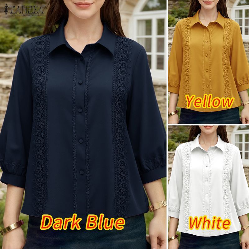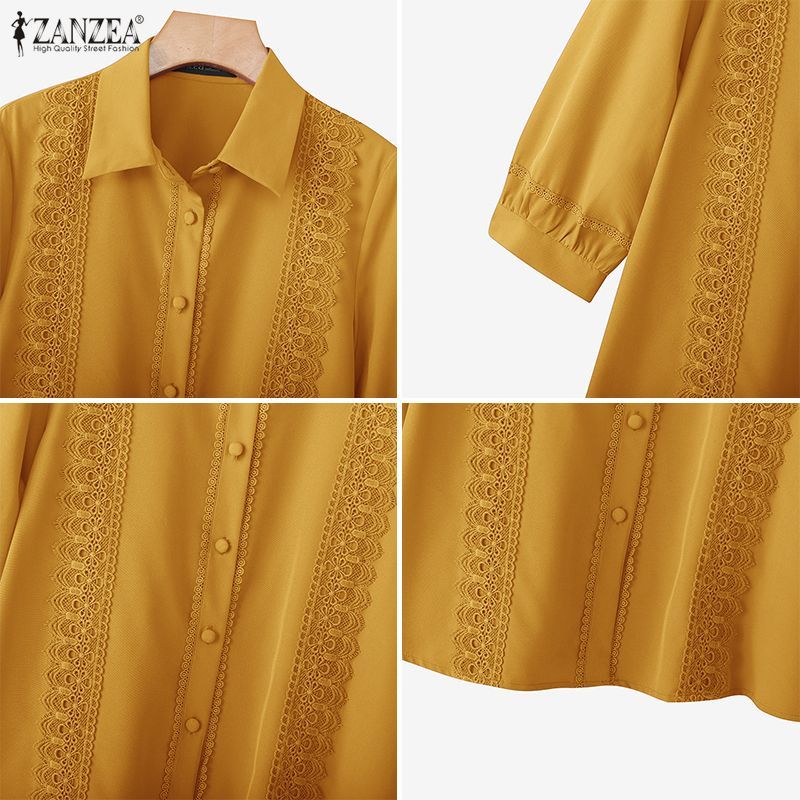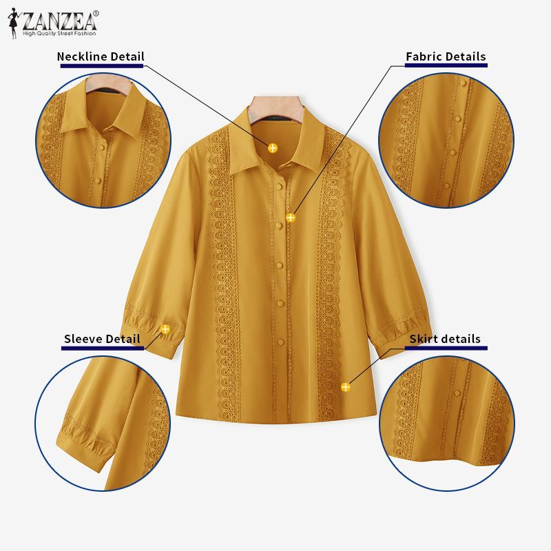 ZANZEA เสื้อลูกไม้แขนกึ่งาวสำหรับผู้หญิง ดีไซน์เรียบหรูและประณีต มีกระดุมหน้า
