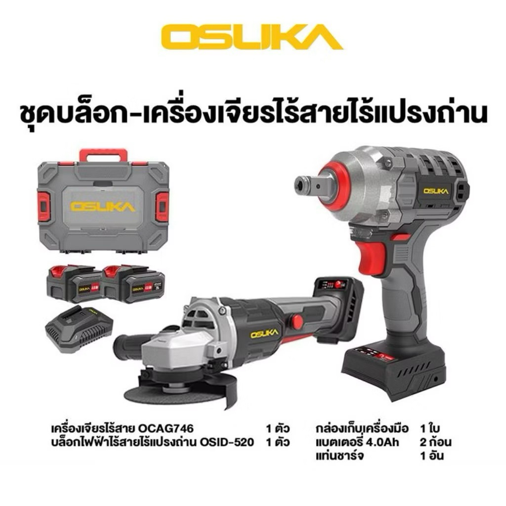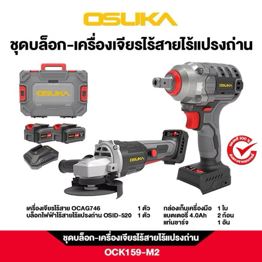ชุดบล็อก-เครื่องเจียรไร้สายไร้แปรงถ่าน OCK159-M2 OSUKA อุปกรณ์ในชุด 🔺บล็อกกระแทกไร้สาย 1 ตัว🔺หินเจียร์ไร้สาย 1 ตัว🔺แท่นชาร์จแบตเตอรี่ 1 อัน🔺กล่องเครื่องมือ 1 กล่อง