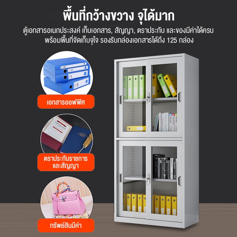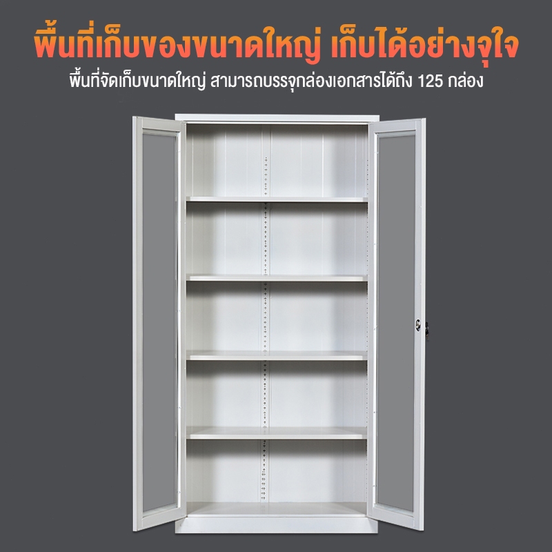 ใช้กระจกนิรภัยคุณภาพสูง แข็งแรง ไม่แตกง่าย มองเห็นเอกสารภายในได้ชัดเจน ค้นหาเอกสารได้สะดวก ประหยัดเวลา