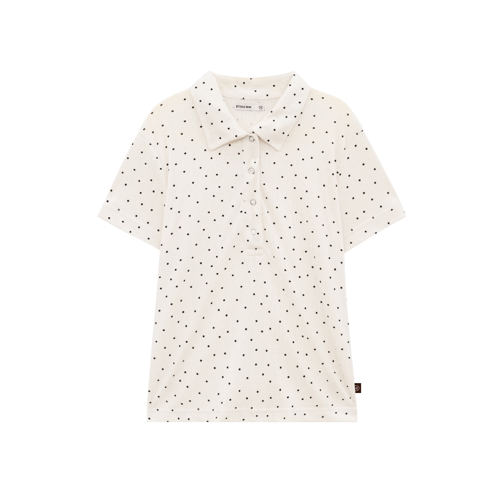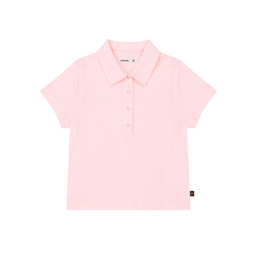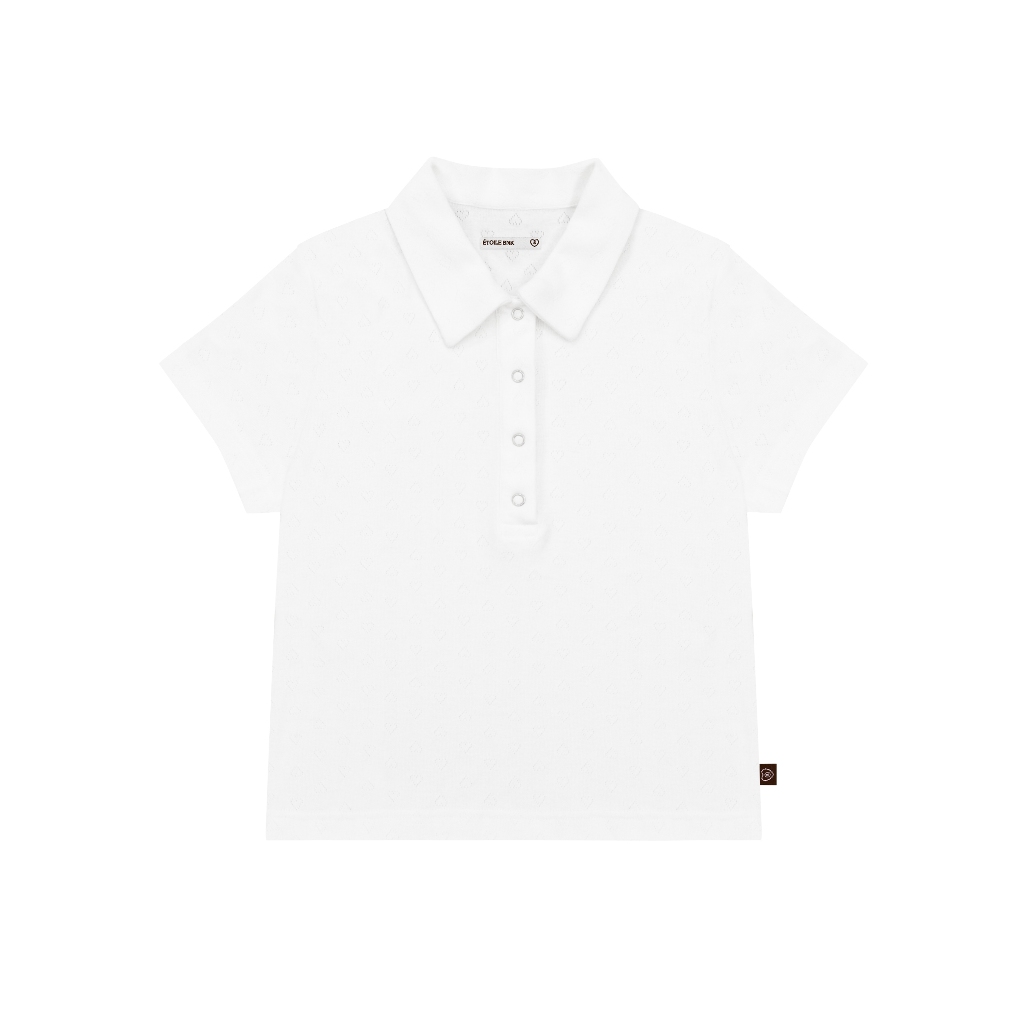 เสื้อโปโลแขนสั้นดีไซน์น่ารักสไตล์ casual feminine ที่โดดเด่นด้วย ผ้าฉลุลายหัวใจ เพิ่มความหวานแบบเบาๆ แต่ยังคงกลิ่นอายความเท่ของเสื้อโปโลไว้ได้อย่างลงตัว