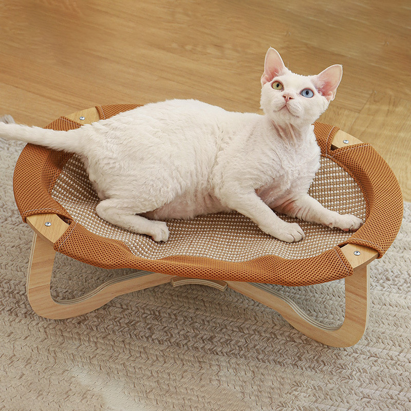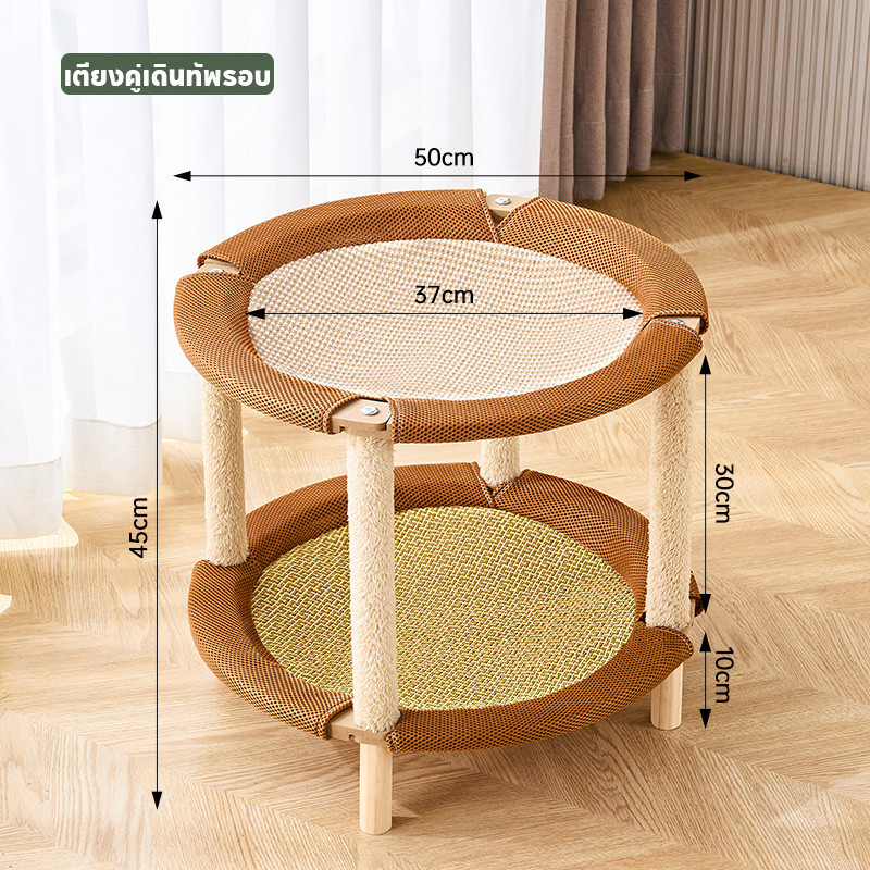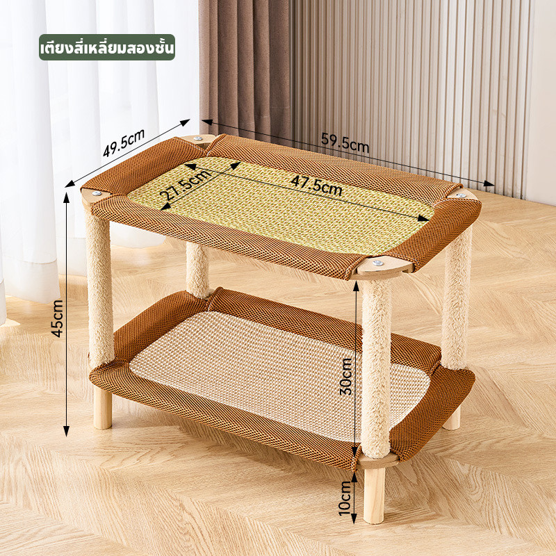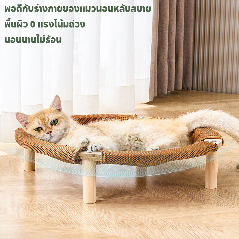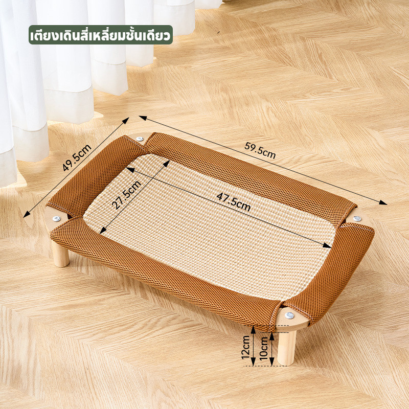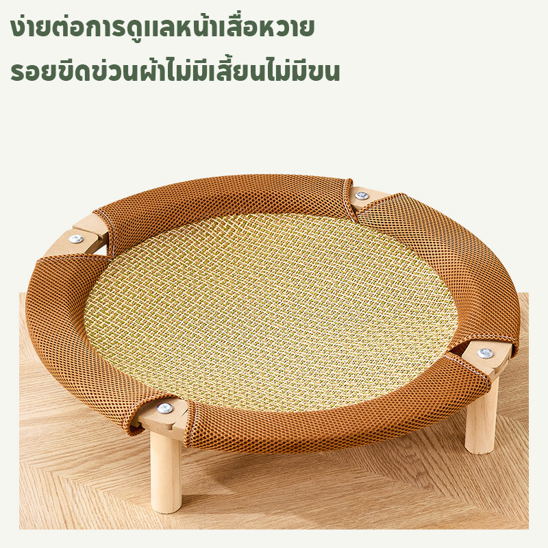 Pet Space 2in1 เตียงแมวยกระดับ เบาะนอนแมว เตียงแมวไม้ ที่นอนแมวถักหวาย วัสดุป่านศรนารายณ์