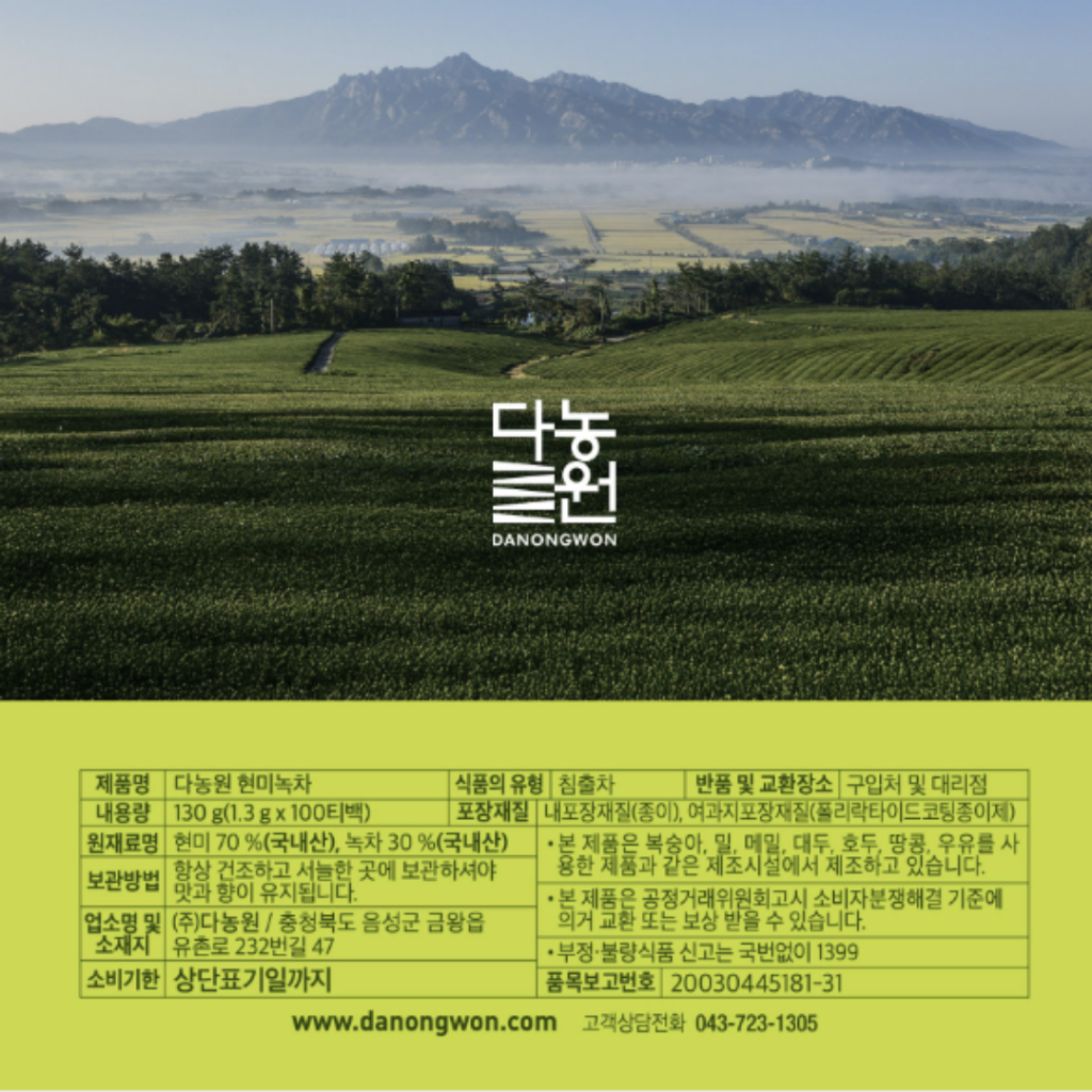 [Dannongwon] ชาเขียวข้าวกล้อง,130g(1.3g x100 ถุงชา), เกาหลี-ชา