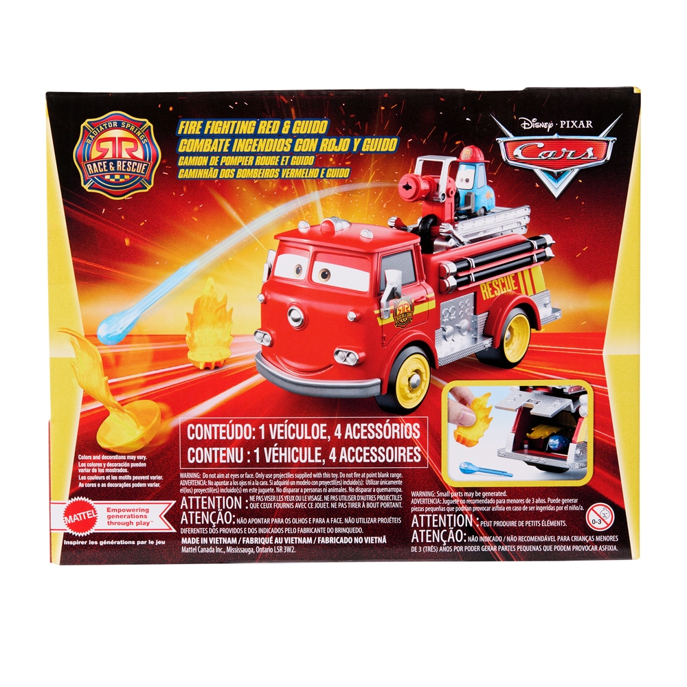 เกิดไฟไหม้ที่งานแข่งรถเรดิเอเตอร์สปริงส์แรลลี่ 200 เรดและกวิโดต้องรีบวิ่งไปยังที่เกิดเหตุ เมื่อไปถึง เด็กๆ เลื่อนรถกวิโดที่ติดอยู่ถอยหลังออกมา เผยให้เห็นปืนฉีดน้ำที่บรรจุกระสุนน้ำไว้ เล็งไปที่กองไฟที่ให้มา กดคันโยกลง แล้วยิงไปที่กองไฟเพื่อดับไฟ! ร่วมฉลองส