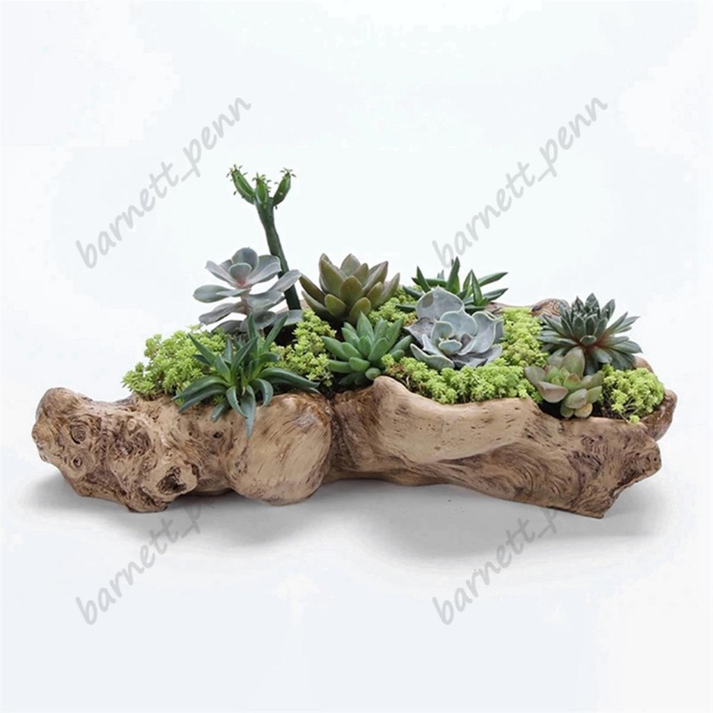 Pastoral Retro ภูมิทัศน์ดอกไม้หม้อเรซิ่น Tree Stump Planter ประดิษฐ์ Driftwood ประติมากรรม Rustic