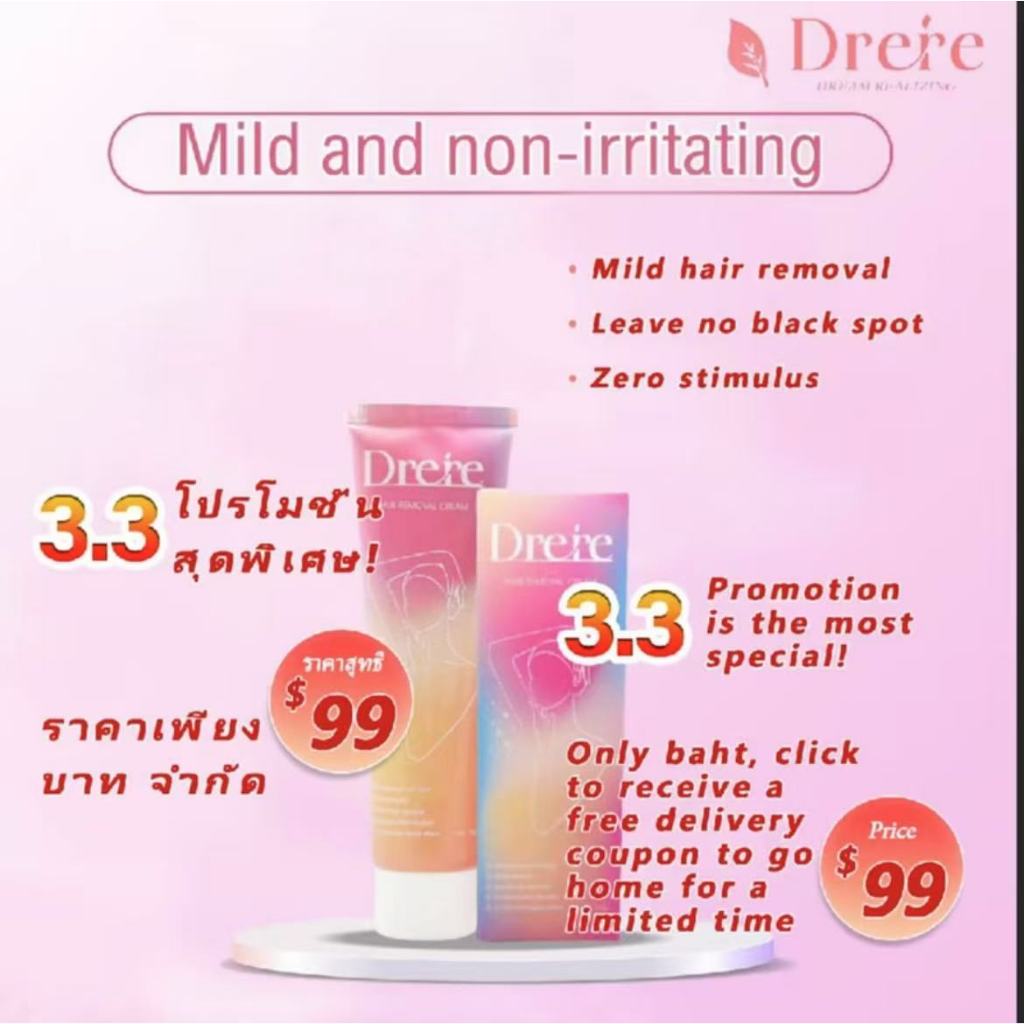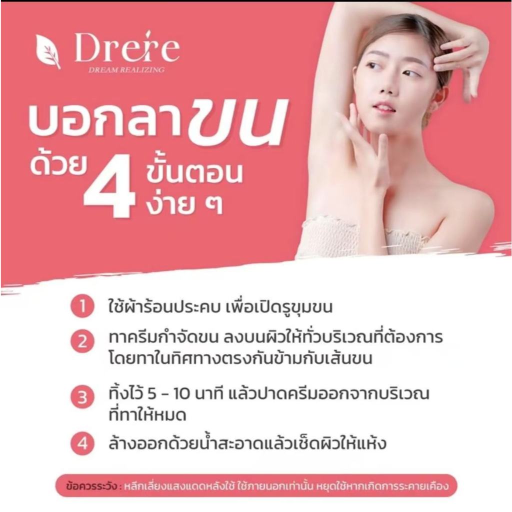 ครีมกำจัดขน DRERE กำจัดขน อย่างมีประสิทธิภาพ เหมาะสำหรับ ใต้วงแขน กำจัดขน ด้วยแว็กซ์ และกำจัดขนรักแร้
