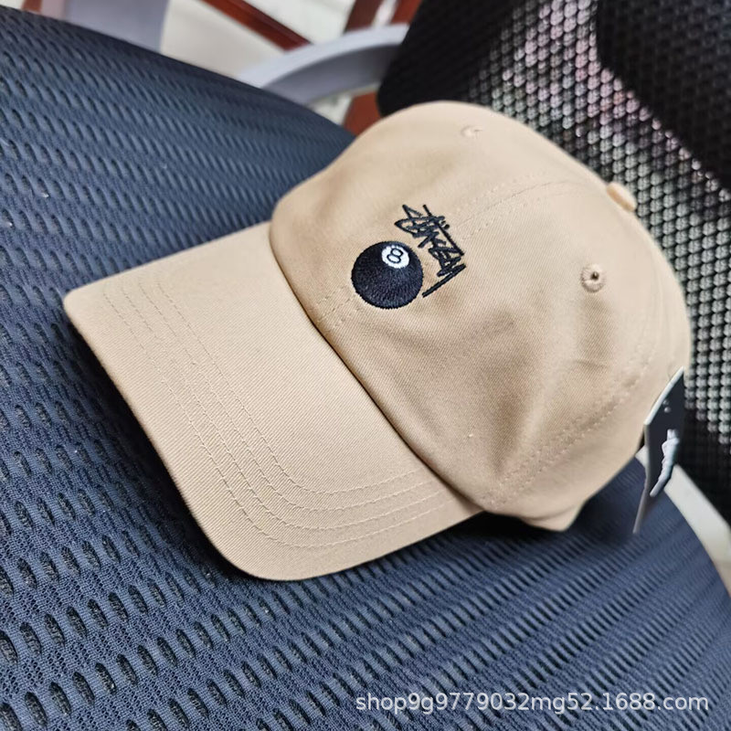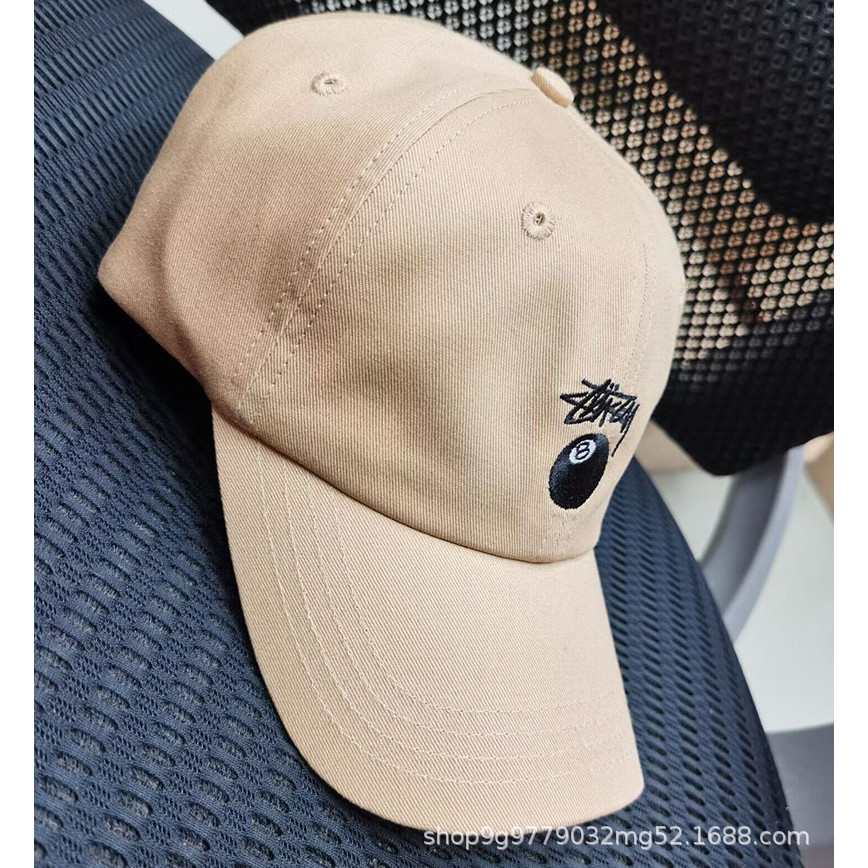 Street Wear STUSSY สีดํา 8 หมวกเบสบอลปักหมวกกันแดดหมวกด้านบนนุ่มหมวกคู่