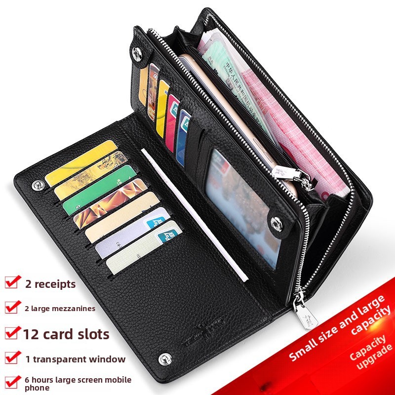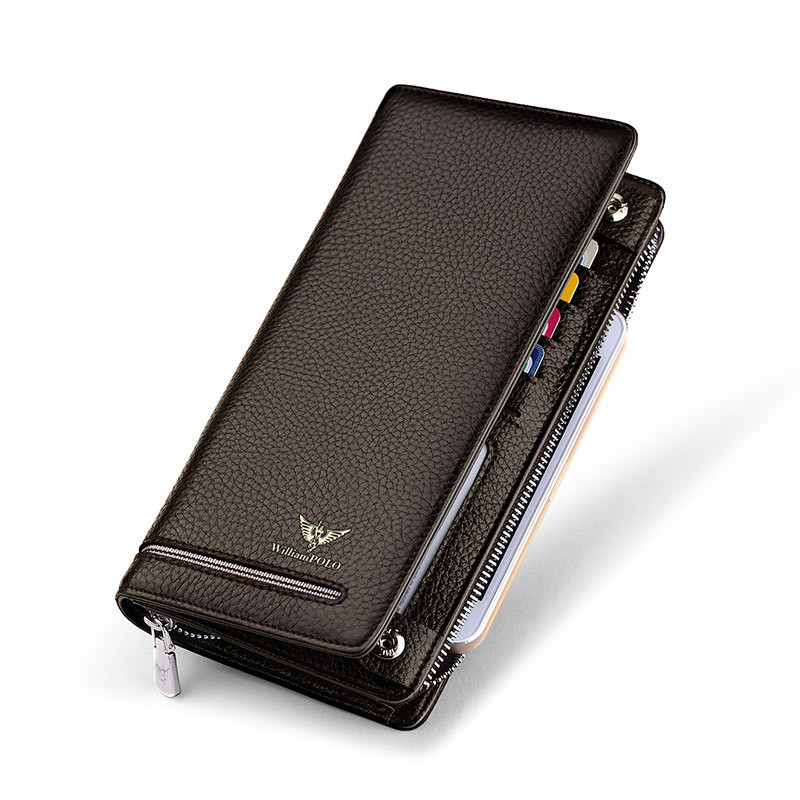 Emperor Paul Wallet Mens Long Wallet Mens First Layer Cowhide หนังแท้กระเป๋าสตางค์เรียบง่ายคลัทช์ผู้ชายขายส่ง