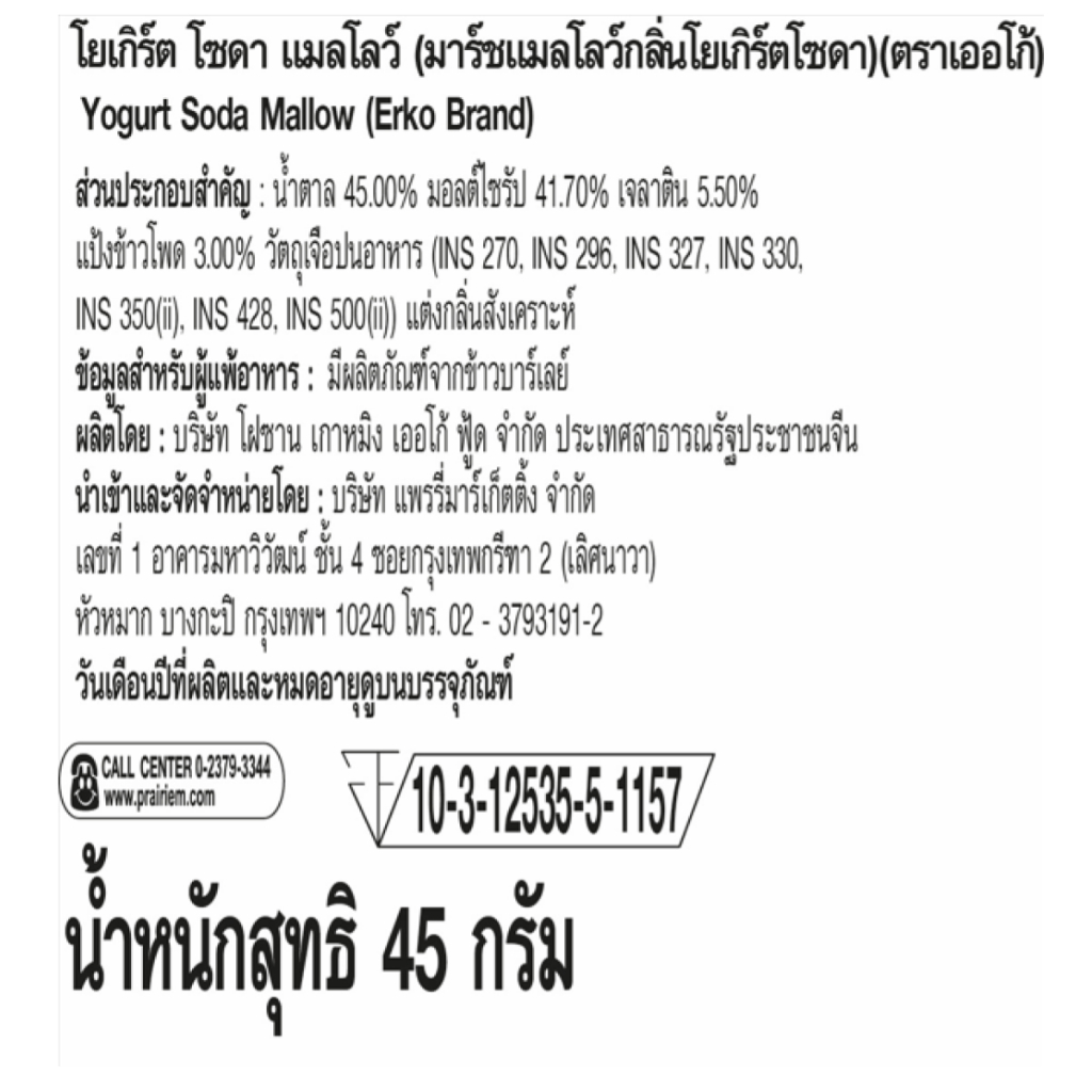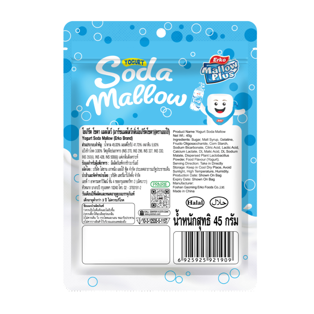 เออโก้ โยเกิร์ต โซดา แมลโลว์ (มาร์ชแมลโลว์กลิ่นโยเกิร์ตโซดา) 45 กรัม / Erko Yogurt Soda Mallow 45 g.