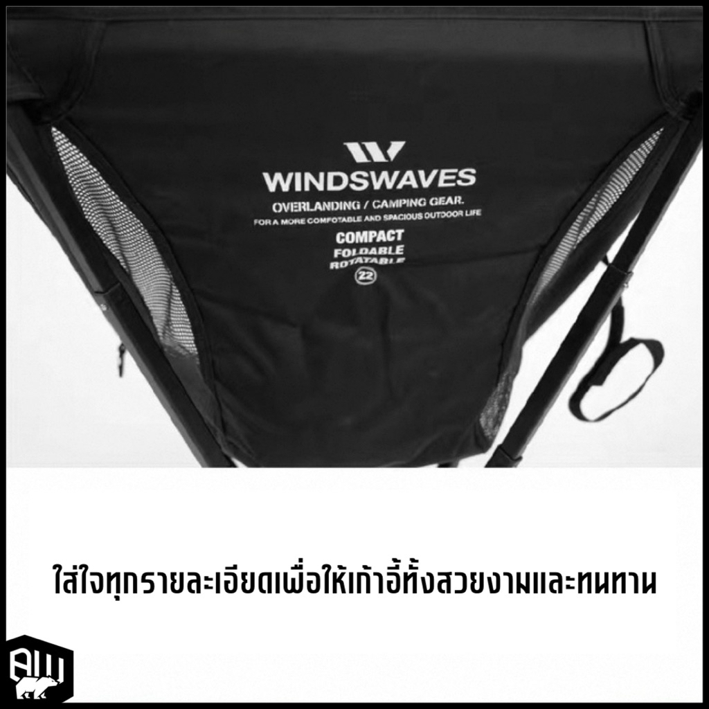 เก้าอี้สนามชายหาดหมุนได้ของ WINDSWAVES สามารถหมุนได้ 360 องศา เหมาะสำหรับการตั้งแคมป์พักผ่อนริมชายหาด และอื่น ๆ การใช้งานง่าย แม้แต่ผู้เริ่มต้นก็ใช้งานง่ายได้สะดวก